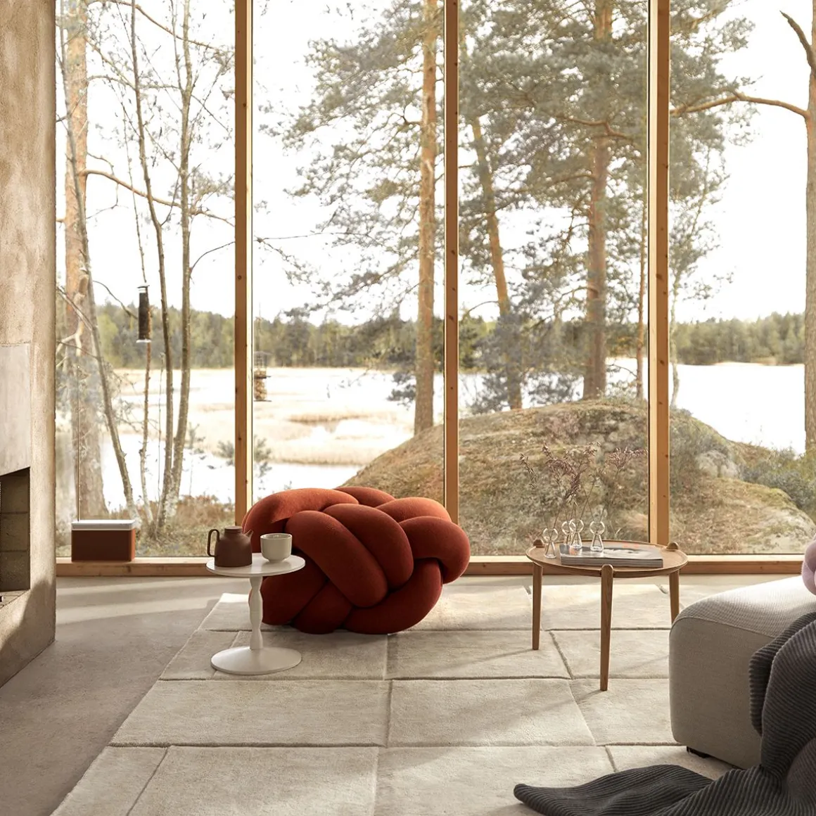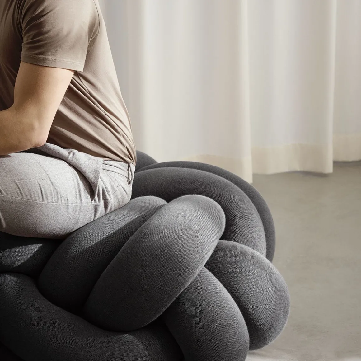 Knot XL de Ragnheidur Sigursdottir est une forme de fantaisie qui s’inspire de la fabrication de nœuds, du tricot, de l’exploration de formes sculpturales plutôt que de motifs ordinaires. Né en partie d’une tentative de fabriquer plutôt que de crocheter des pattes pour un ours en peluche, le coussin Knot original est devenu une pièce de galerie d’art conviviale. La version XL est encore plus : une nouvelle typologie d’assise qui s’adapte à tout le monde et une possibilité parfaite de s’asseoir au même niveau que les tout petits. Appuyez-vous dessus, asseyez-vous dessus, détendez-vous dessus et laissez Knot XL briser les hiérarchies lors d’une conversation. Laissez-le remplacer ou compléter n’importe quel canapé ou fauteuil de salon, un meuble décontracté à la maison, dans un bureau animé et dans tout espace public informel. Et lorsqu’il n’est pas utilisé, laissez-le se démarquer comme une sculpture. Vous pouvez même l’utiliser pour le yoga, l’une des utilisations personnelles préférées de Ragnheidur .