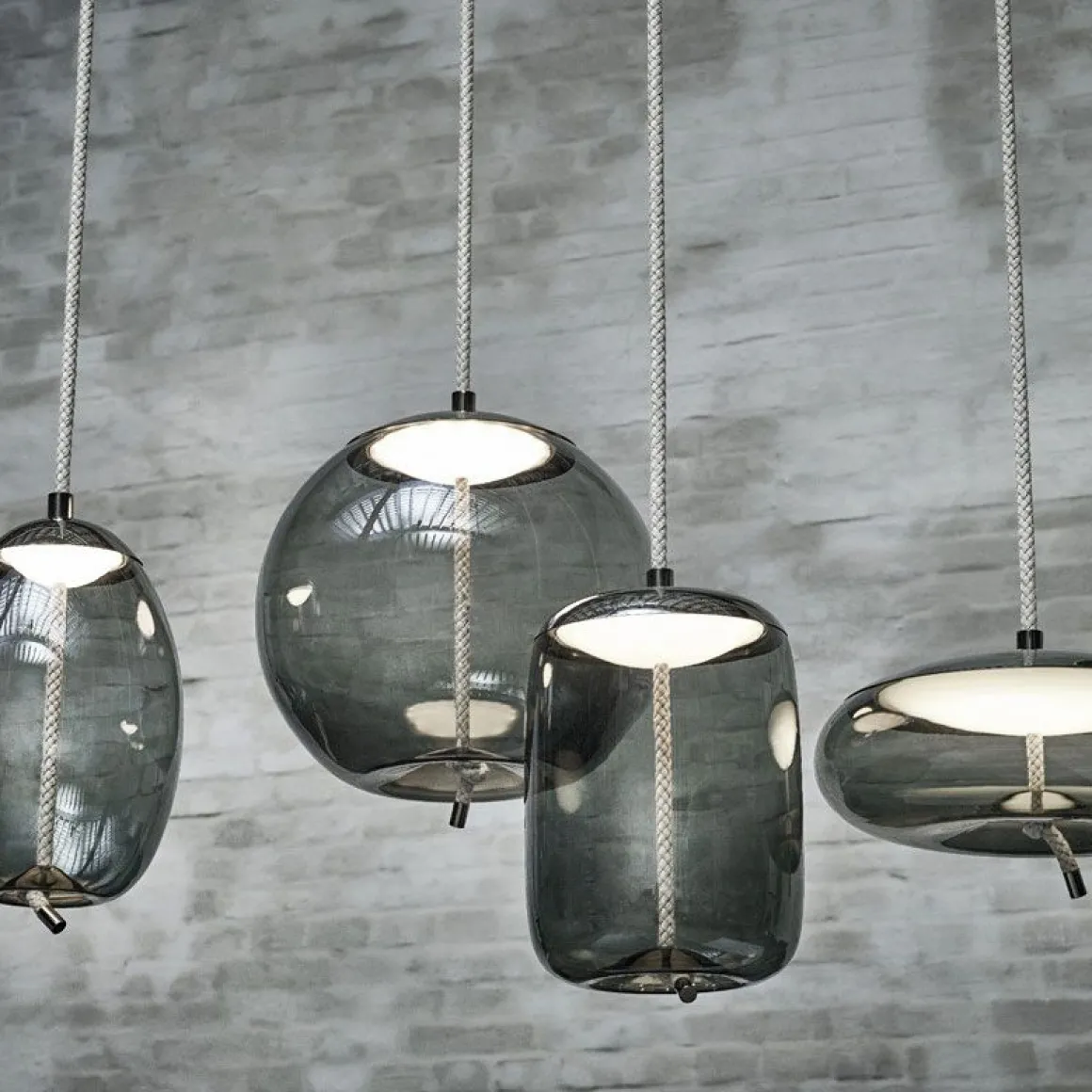 KNOT est une collection de lampes à suspendre majestueuses dans laquelle se confrontent deux matériaux différents, deux principes différents – la douceur des courbes arrondies du verre soufflé transparent et l’austérité d’un câble écru tendu. Le design résultant est à la fois surprenant, rectiligne et digne. Les formes pleines et arrondies des différentes proportions sont tranchées par un câble robuste qui semble déformer le fond en verre et créer ainsi un effet de plasticité et d’élasticité. Le nœud qui se trouve à l’extrémité du câble est l’élément artistique caractéristique du concept. La source de lumière LED est recouverte d’un capot métallique et elle est protégée par le bas par un diffuseur en verre opale soufflé à la main. Un autre composant métallique a été utilisé pour réaliser l’embout du câble. Les lampes de la collection Knot pourront être installées aussi bien dans des intérieurs privés que publics et ce, pas uniquement au-dessus de tables de salles à manger. Cette collection se compose de quatre lampes à suspendre et de diverses variations de couleurs.