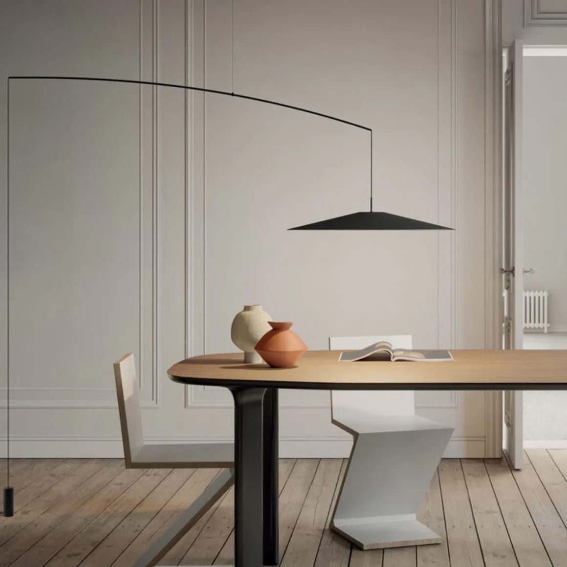 La famille de lampes Koinè de Mandalaki s’agrandit avec une nouvelle solution d’éclairage. A mi-chemin entre la suspension et le lampadaire, la nouvelle Koinè reprend la technologie et le design de la version suspension, désormais dotée d’une structure élégante composée d’une tige longue et fine en carbone, d’un contrepoids cylindrique en acier et d’un variateur à pied. Disponible en finition noir mat (Ø 55cm), Koinè floor s’adapte à différents types d’espaces grâce à la possibilité de régler son inclinaison et sa hauteur lors de l’installation. La source lumineuse, avec sa lentille en verre, éclaire de manière uniforme et distincte.
