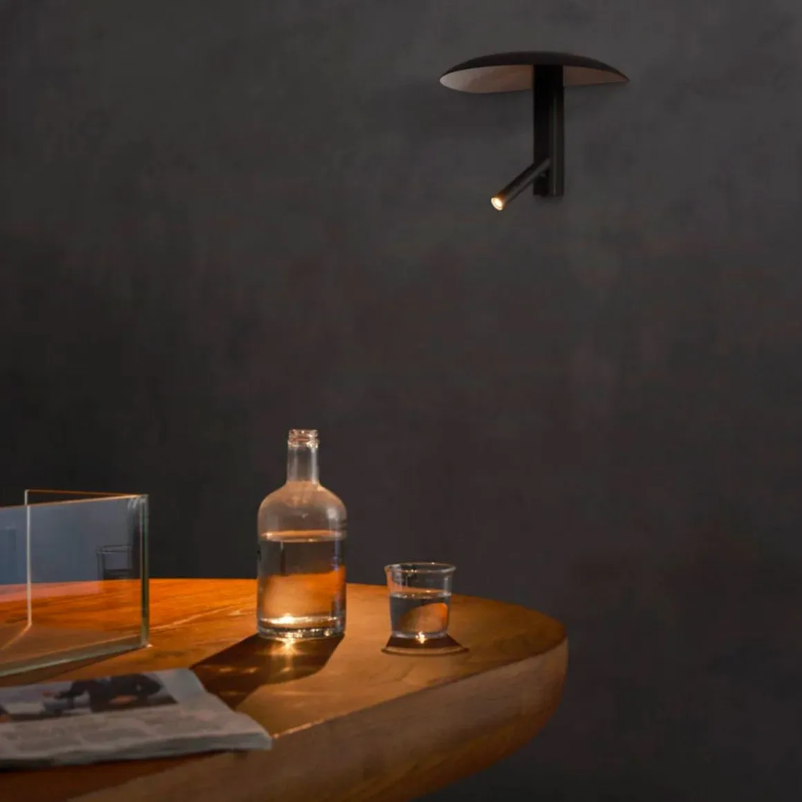 Konoha de Marset par Yabu Pushelberg. Pour les designers George Yabu et Glenn Pushelberg, le design consiste à raconter des histoires. C’est certainement le cas de leur nouveau modèle Konoha, une applique murale à double fonction qui nous indique de quels types d’éclairage nous avons besoin autour de nous et offre toutes les possibilités nécessaires pour les réaliser. Par curiosité et analyse, les designers ont pris en compte un certain nombre de variables, notamment celles liées à nos émotions ; la lumière est sans doute l’élément le plus intime d’un environnement, sa conception doit donc être réfléchie, fonctionnelle et utile. Le studio de design Yabu Pushelberg, mondialement connu pour ses nombreux projets hôteliers, estime que l’éclairage des chambres d’hôtel est souvent redondant. Chaque pièce a besoin de lumière directe et ambiante, c’est pourquoi ils ont choisi d’inclure les deux fonctions dans un seul design. Le résultat est une applique simple et discrète avec un abat-jour sur un spot orienté qui tourne à 360°. L’abat-jour, tel un chapeau, recouvre le projecteur, permettant à la lumière d’être dirigée vers le haut, de rebondir sur l’intérieur et de projeter un faisceau de lumière douce, créant un éclairage d’ambiance chaleureux. Si, au contraire, le projecteur est orienté vers le bas, il projette un faisceau de lumière directe, transformant l’appareil en lampe de lecture. Le design Konoha est disponible dans une gamme de couleurs, avec des nuances neutres et organiques qui s’intègrent parfaitement à n’importe quel espace. Elle peut être utilisée comme lampe de lecture dans les salles d’attente, les chambres ou les hôtels. Il peut également s’agir d’un point lumineux dans les allées, d’une applique murale dans les restaurants ou d’un moyen d’apporter un éclairage d’ambiance aux entrées d’un hôtel. Konoha invite les utilisateurs à interagir avec sa lumière et à l’utiliser tout au long de la journée.