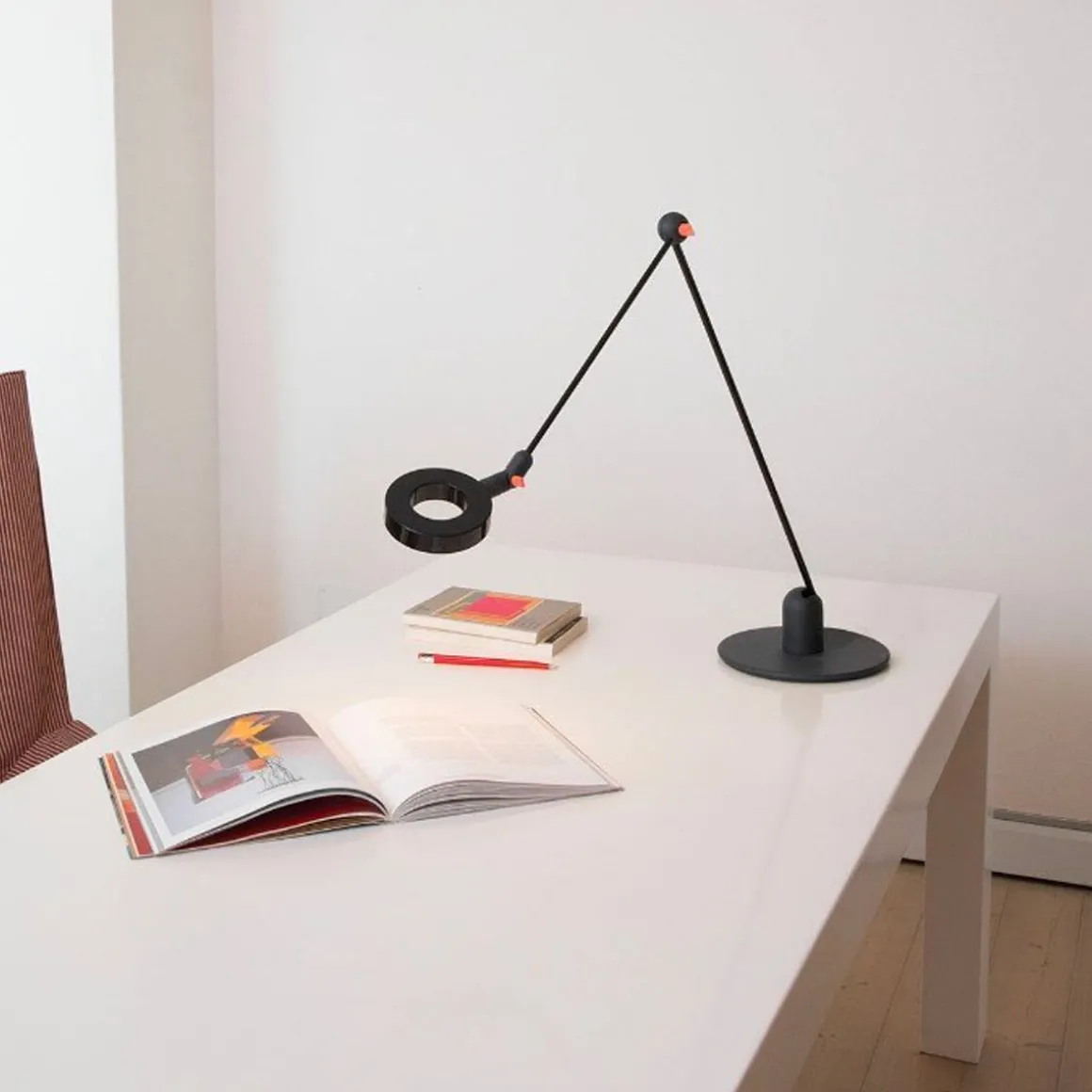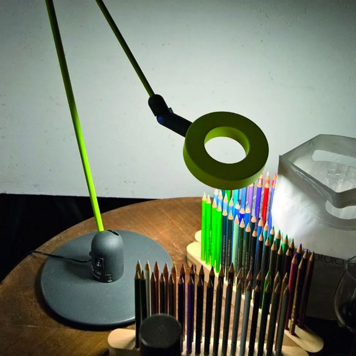 Vous choisissez une amie (Amica) car elle sait vous distraire, vous vous sentez bien avec elle pendant votre temps libremais surtout elle est près de vous en cas de besoin. L’Amica illumine vos journées, lorsque vous êtes plongé dans vos lectures préférées à un certain moment de la journée ou tout simplement pour un moment de détente, en toute discrétion ; silencieuse, son corps est minimal et articulé et sa tête est ronde et orientable. Lampe de table à lumière directe, bras articulé en métal et tête orientable en aluminium.