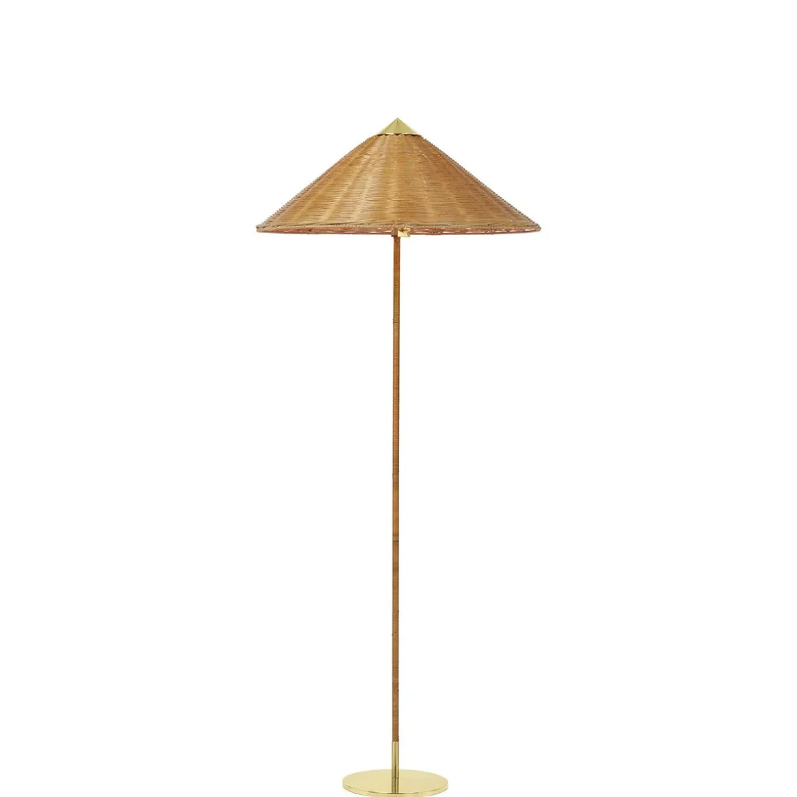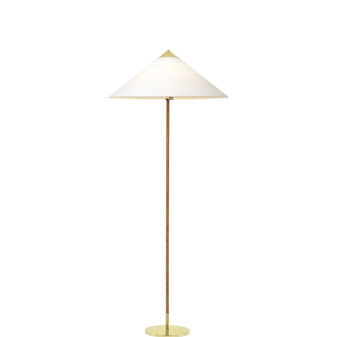 Le lampadaire 9602 de Gubi, également appelé «chapeau chinois», a été conçu par Paavo Tynell en 1935 pour l’Hôtel Aulanko. Caractérisé par son abat-jour élégant et aérien et sa tige recouverte de rotin, le lampadaire 9602 montre l’imagination sans limites du concepteur et sa capacité inégalée à créer des motifs d’une beauté durable. Ajoutant une qualité ludique et exubérante au sommet, équilibrée par la forme plus statique de la base, la lampe de sol 9602 est parfaitement adaptée pour créer une douce lumière ambiante dans le salon domestique.