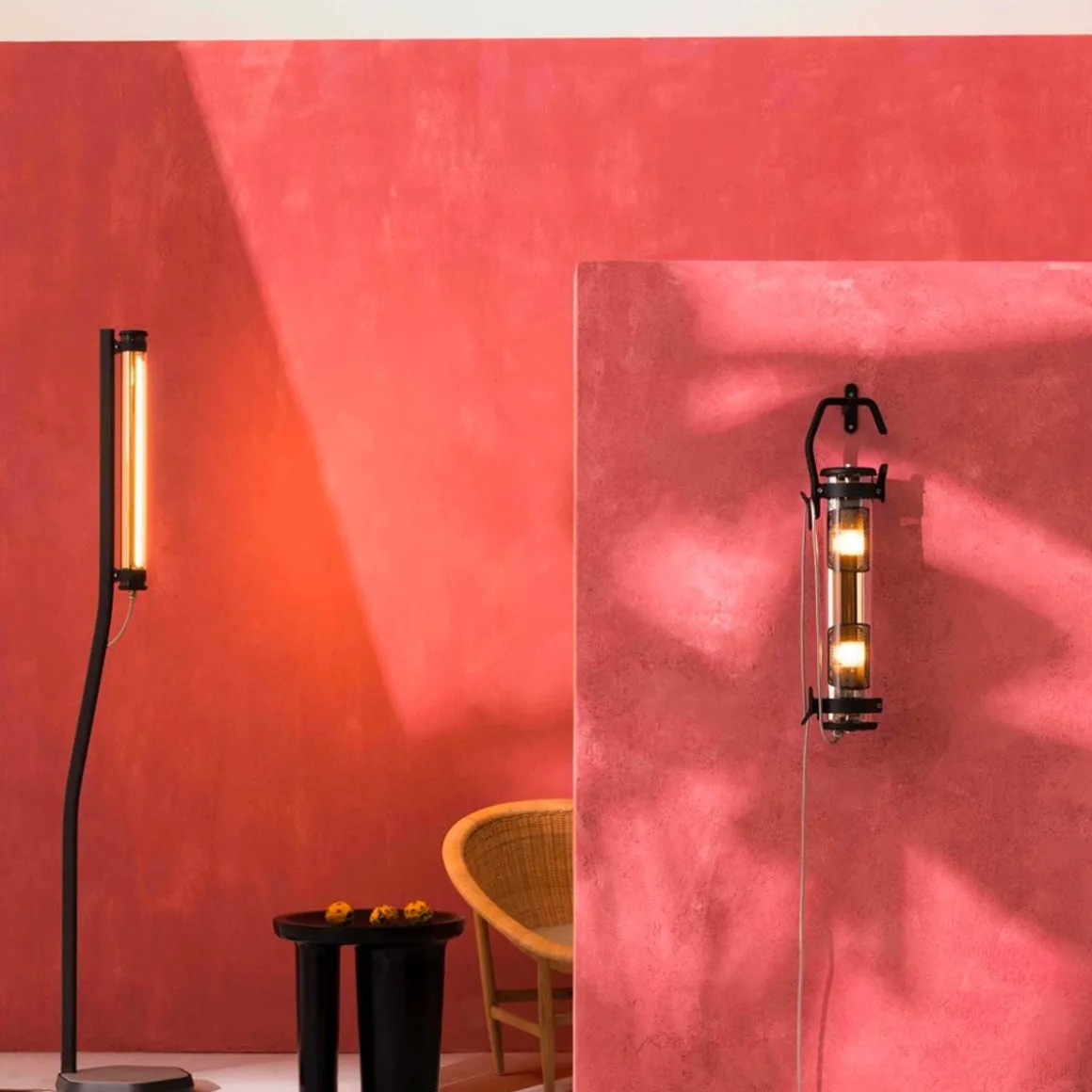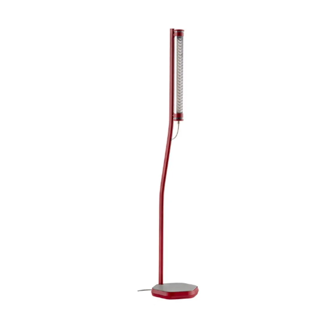 Matériaux : tube en polycarbonate qualité cristal, mât en aluminium laqué, réflecteur en aluminium anodisé