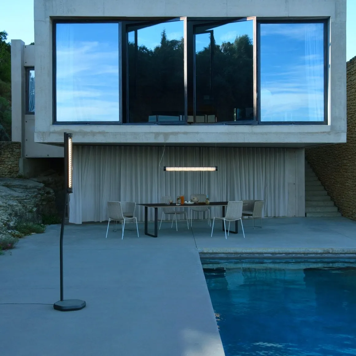 Avec son socle en béton et son mât en aluminium, ce lampadaire est conçu pour éclairer terrasses et jardins. Sa lumière est adoucie et teintée par les lamelles métalliques du tube Elgar, disponible en finition cuivrée, dorée, argentée, laiton et pétrole. Etanche de la tête au pied jusqu’à son boitier de gradation qui vous permet d’adapter son intensité lumineuse à toutes les situations – le Bodom sublimera aussi bien votre intérieur que vos espaces extérieurs, en toutes saisons. Tous nos luminaires sont fabriqués, assemblés et emballés dans notre usine à Châtillon-sur-Saône dans les Vosges.