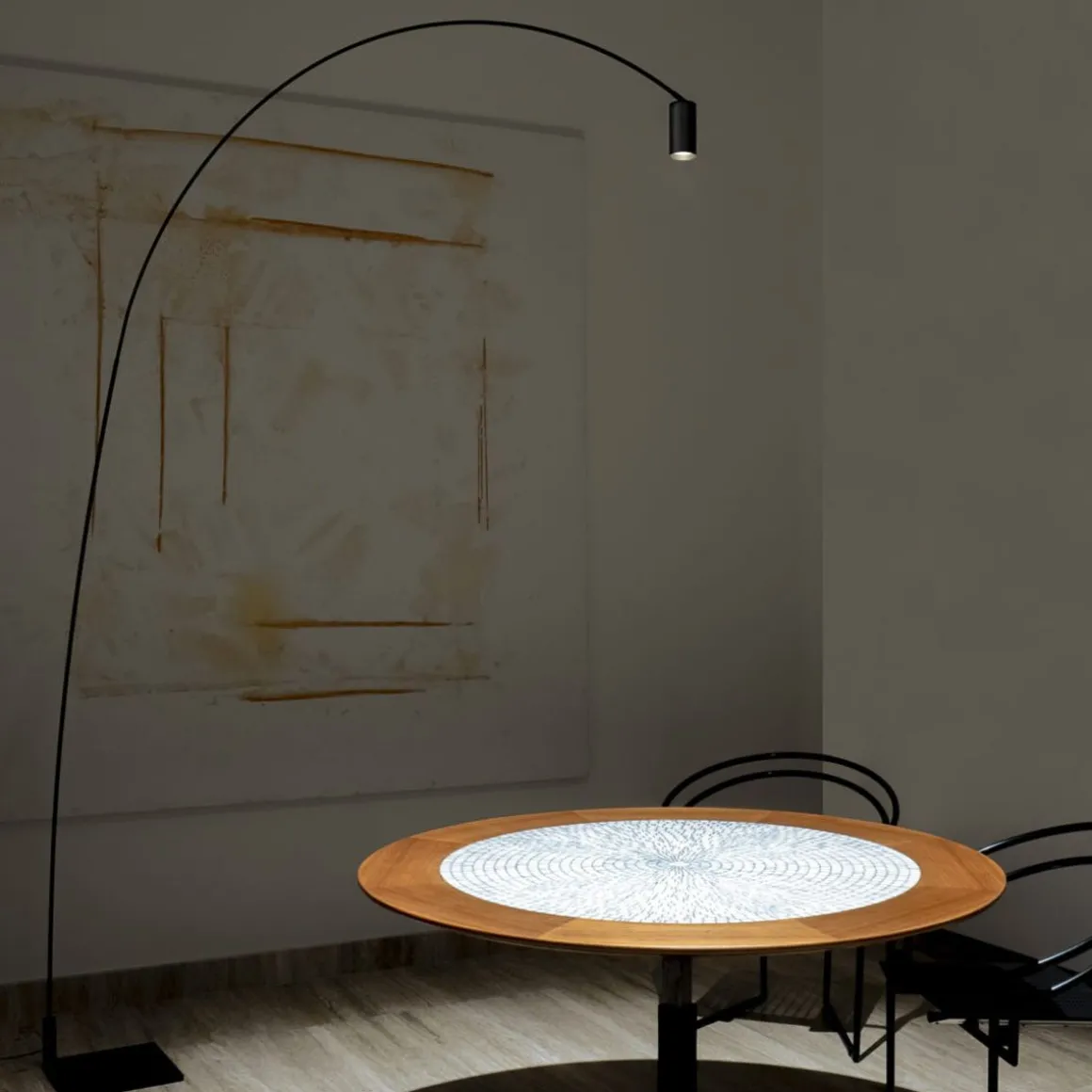 FOX est un lampadaire LED dimmable. Structure et base en acier peint noir mat. Spot en aluminium avec filtre en nid d’abeille en option pour antireflet. Son arc de pivotement et sa tête cylindrique orientable permettent d’orienter avec souplesse le faisceau lumineux pour une lumière diffuse chaude et constante.