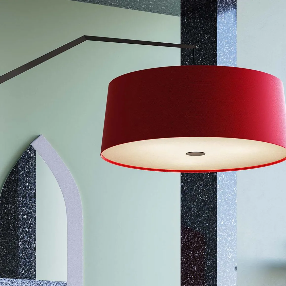 Lampadaire Grus, conçu par Alberto Saggia et Valerio Sommella, ce lampadaire présente un spot lumineux décentré et une structure géométrique élancée en métal thermolaqué. Son cadre est composé de deux parties articulées l’une sur l’autre, maintenues par un câble métallique parallèle à la structure et fixé à la base rhomboïdale. Le métal enduit de poudre est disponible dans une élégante finition gris graphite tandis que le grand diffuseur en tissu est disponible dans les finitions blanc, vin rouge et sauge.