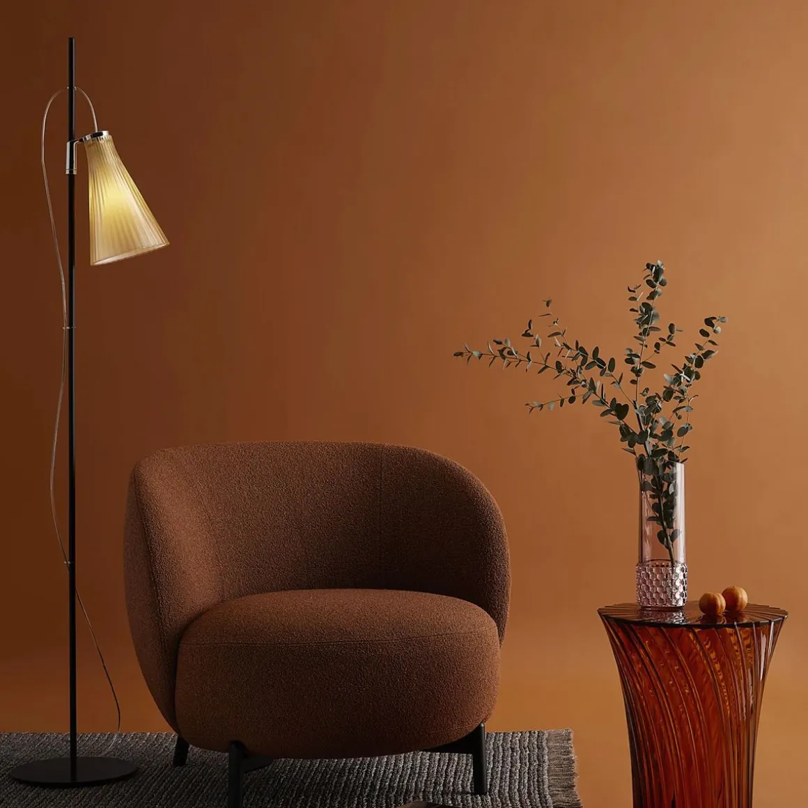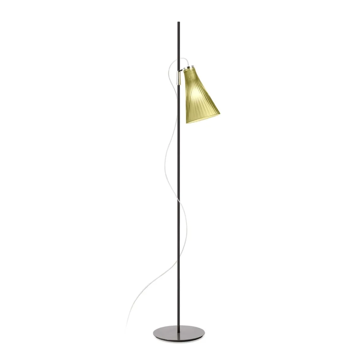 La lampe de sol K-LUX se caractérise par la réfraction particulière de la lumière à travers les épaisseurs, modelées par l’injection plastique bi-matière, et par le pavillon bicolore, blanc à l’intérieur et coloré à l’extérieur. La tige gris ou noir de ce modèle disponible en six couleurs différentes peut être assortie de plusieurs manières à l’abat-jour fumé, vert ou jaune paille.