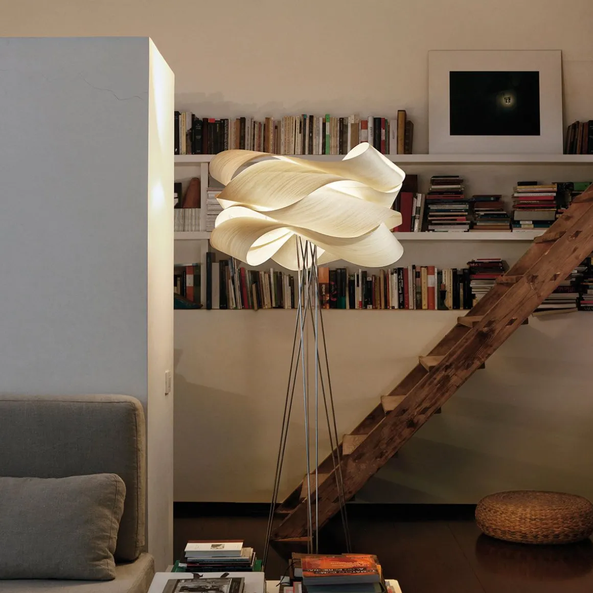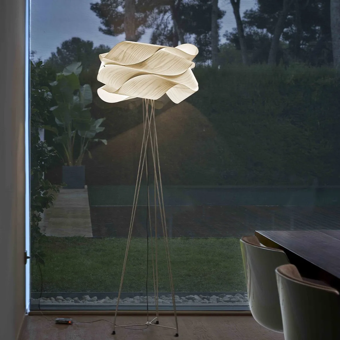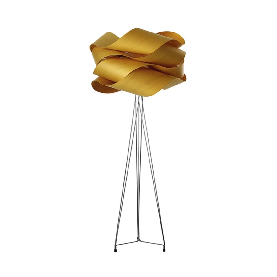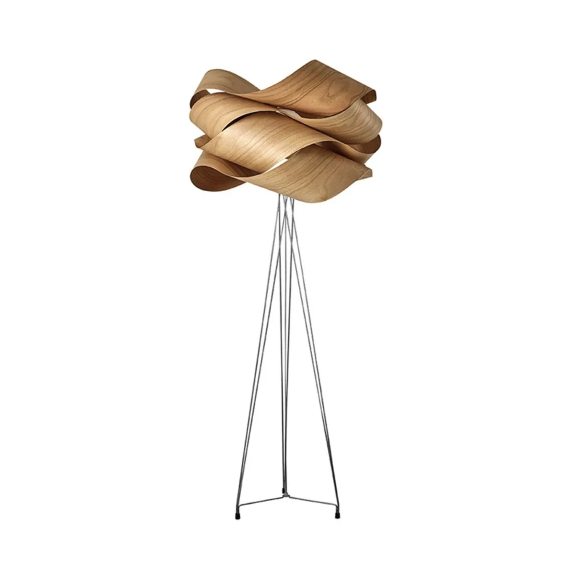 Conçu par Ray Power, Link apparait avec une fringale exceptionnelle dans ses bandes de placage de bois empilées Möbius. En mathématiques, la bande de Möbius est une surface avec un côté continu, ce qui signifie que la lumière de Link est non seulement belle, mais qu’elle est aussi intelligente. Grâce à sa structure volumineuse, semblable à un nuage, Link est résolument facile à regarder. De former ponctuelle, la forme flottante de la lampe illustre de manière intelligente le potentiel important du bois dans la conception des éclairages. Link est une lampe de sol attrayante dont la masse volumineuse repose au sommet d’une base chromée.