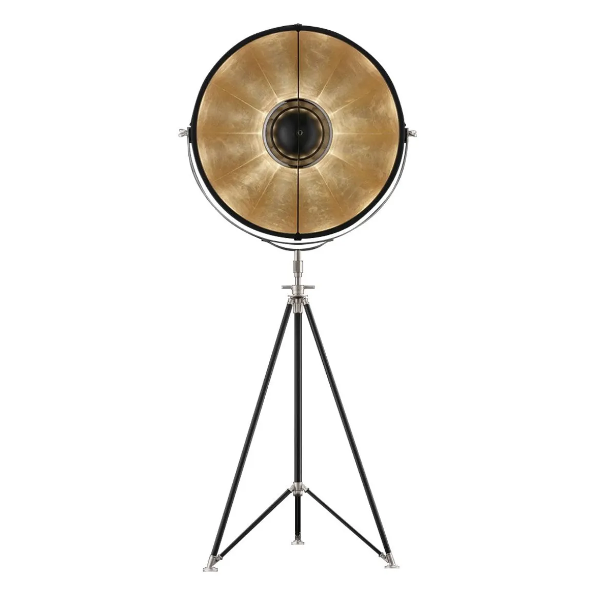 La lampe sur pied Fortuny® Tripod avec abat-jour en aluminium et structure en acier offre une capacité de pivotement et d’inclinaison de 360 degrès. La lumière est indirecte et diffuse.