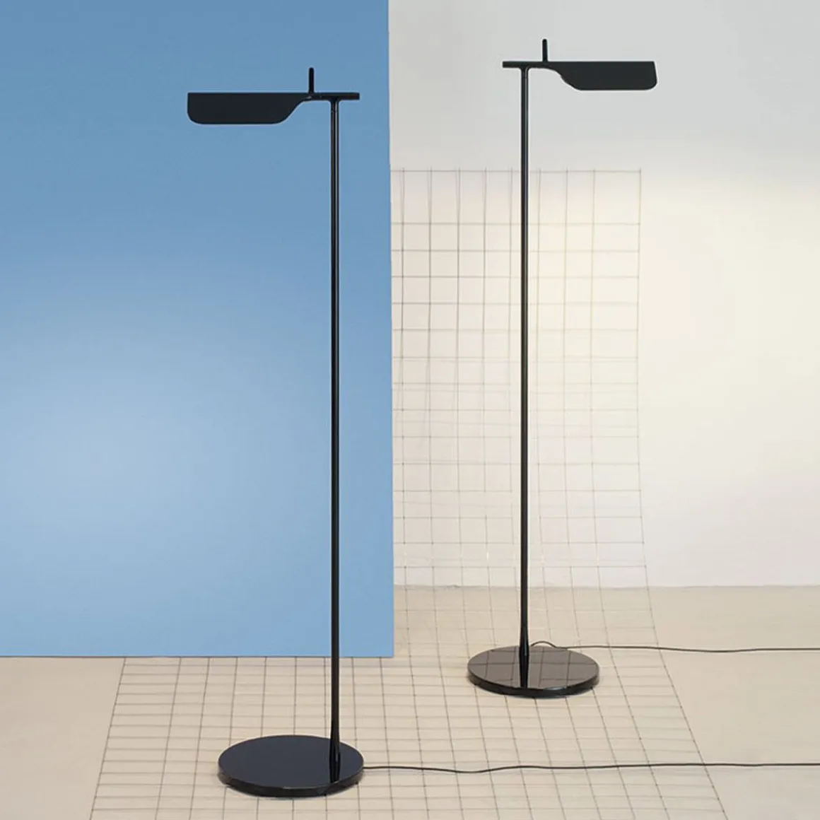 Lampe sur pied à lumière directe, à tête pivotante. Corps en fonte d’aluminium peint. Carte multi-led avec diffuseur en PMMA étudié spécialement pour éviter l’effet Multi Shadow et l’éblouissement. Rotation de la tête de ±90°.