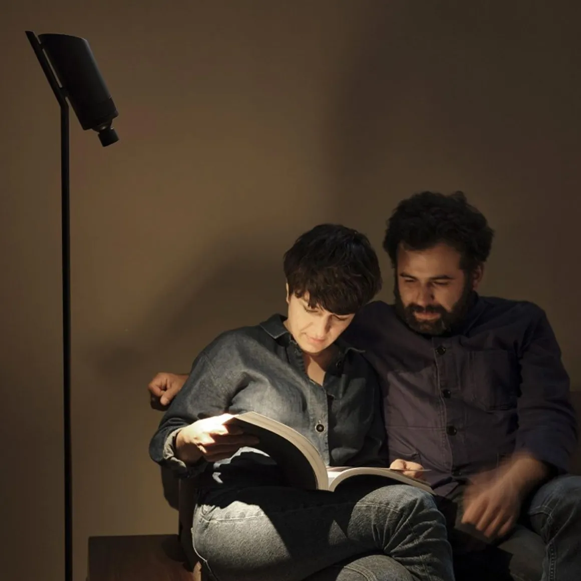 Dimmable, conçu pour pouvoir se glisser sous un canapé ou à l’angle d’un fauteuil, un variateur tactile pour l’éclairage vers le haut et un variateur rotatif pour l’éclairage vers le bas