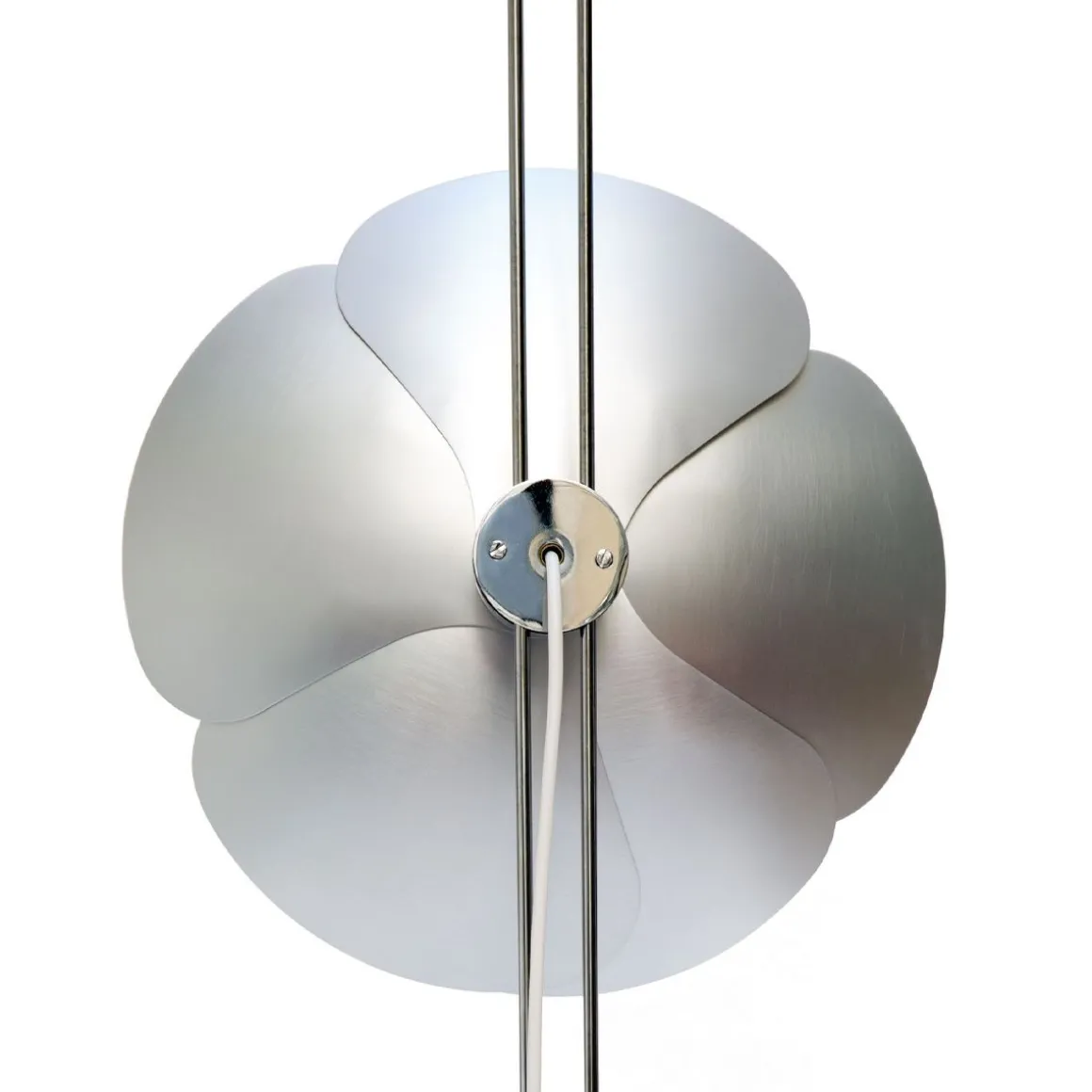 En 1967, Olivier Mourgue invente un appareil d’éclairage en forme de fleur en pétales d’aluminium fixé sur deux fils en métal chromé pour donner des appliques, des plafonniers, des lampes ou des lampadaires. Il utilise cette nouvelle ampoule de l’époque dotée d’une calotte argentée qui permet de produire une lumière réfléchie et donc un éclairage de très belle qualité.