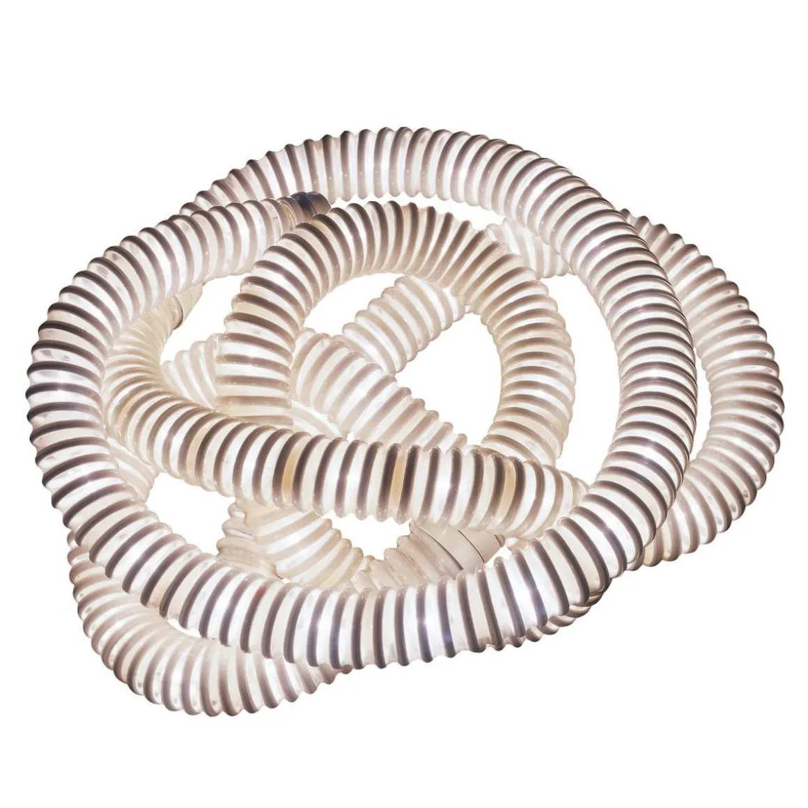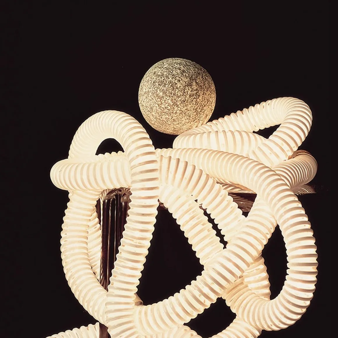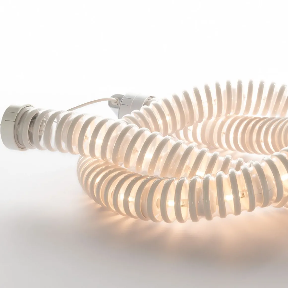 Né en 1970 par Livio Castiglioni et Gianfranco Frattini, et défini par Domus comme « un serpent de lumière sans fin », il est immédiatement entré dans l’histoire du design italien et mondial. Sa structure en PVC souple translucide, renforcée et avec des bornes en résine, le rend pratiquement indestructible. Les différents éléments peuvent être connectés en série jusqu’à un maximum de quatre pièces pouvant être enroulées à volonté. Il émet une lumière diffuse et son design intemporel en fait un feuillage persistant adapté à tous les environnements. Grâce à sa souplesse qui le rend unique dans sa forme, il peut être posé au sol ou sur une table, suspendu ou torsadé pour inventer chaque jour de nouveaux jeux de lumière.
