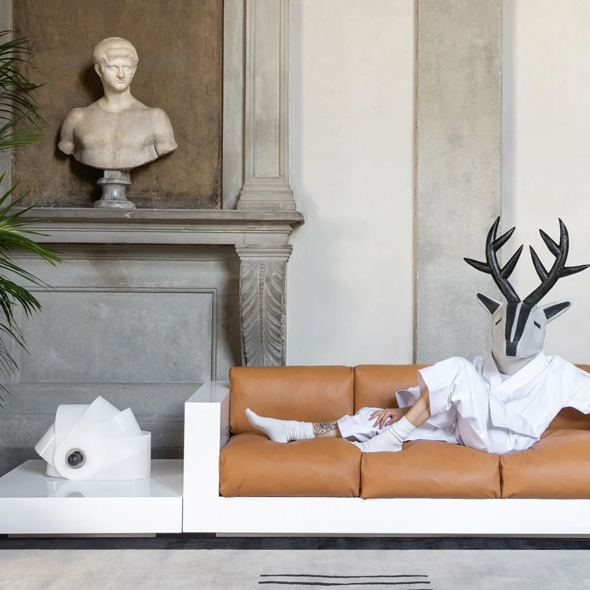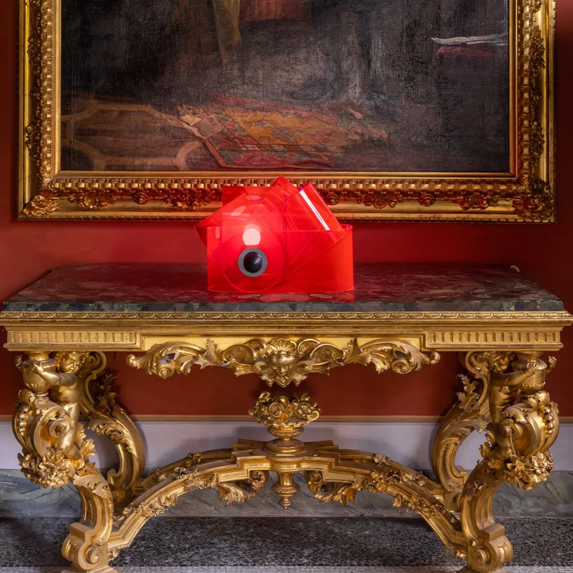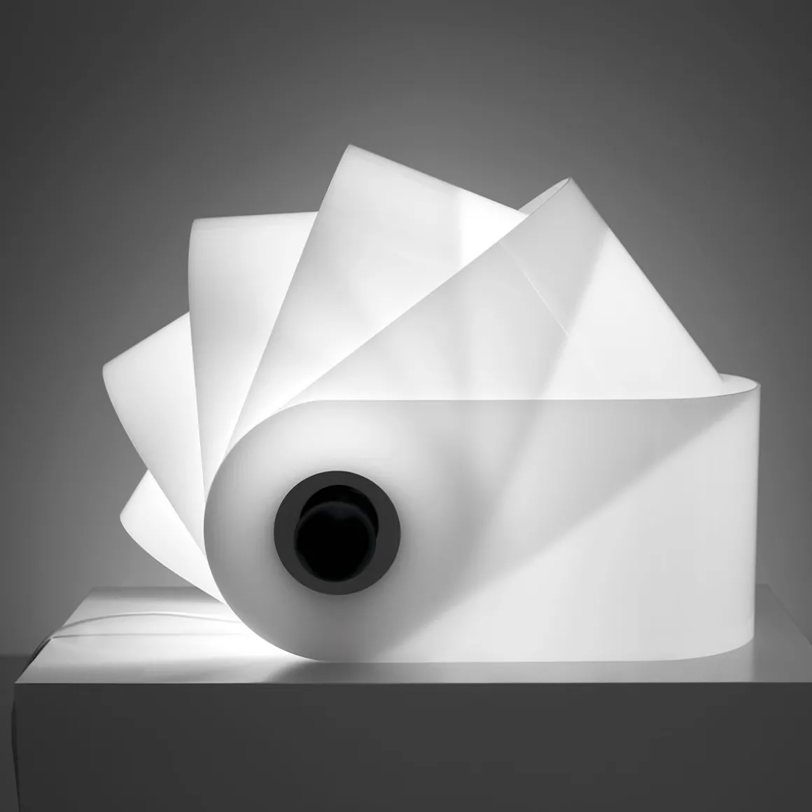 La lampe de table Gherpe n’appartient pas aux typologies traditionnelles des luminaires posés sur une surface, en raison de sa forme comme la coquille d’une créature marine, et de son utilisation d’un matériau industriel comme le méthacrylate. Il représente l’un des premiers exemples d’objet lumineux interactif, qui grâce à sa relation avec l’utilisateur est capable de changer de tonalité : de la lumière blanche pour l’éclairage, à la lumière colorée pour modifier la perception émotionnelle d’un espace.