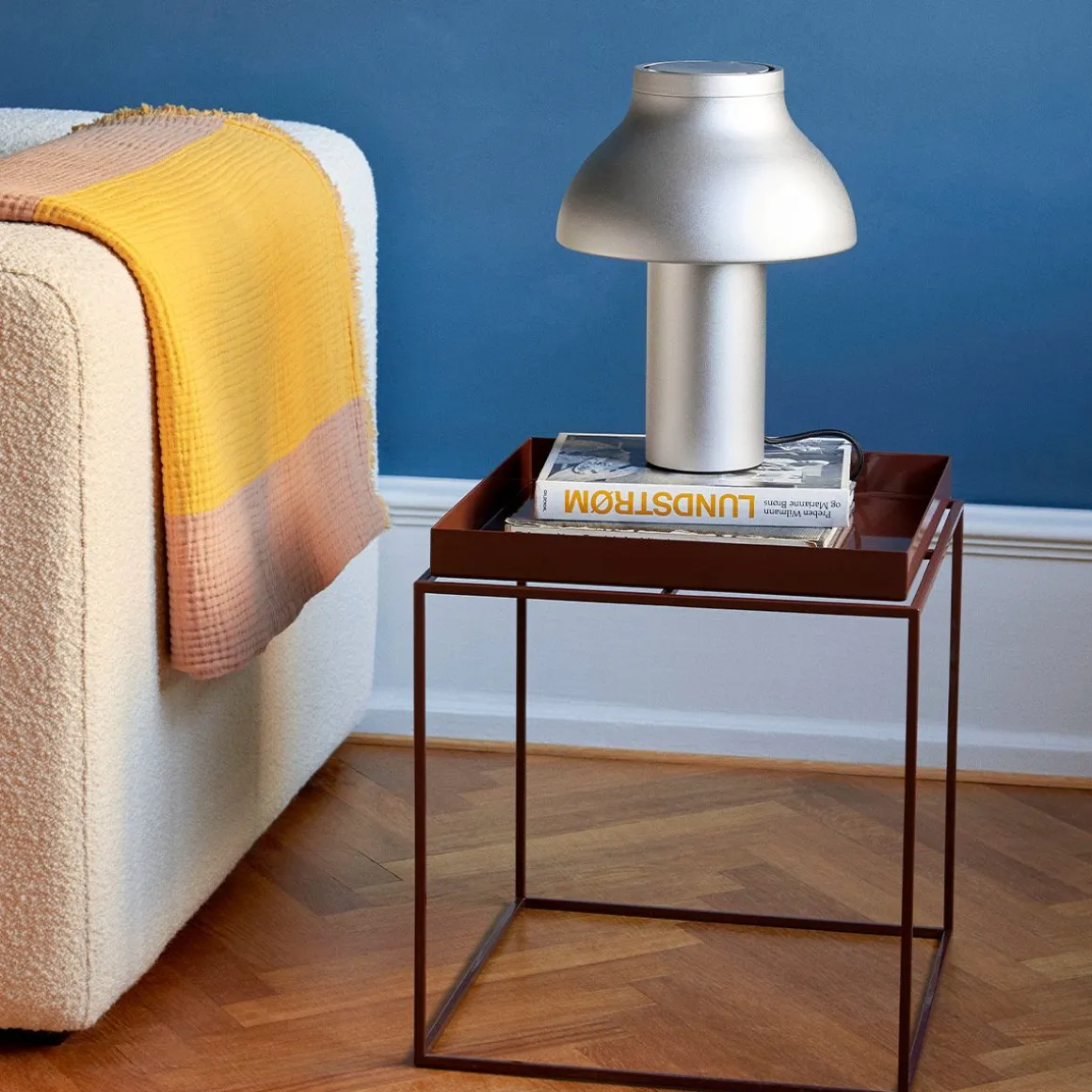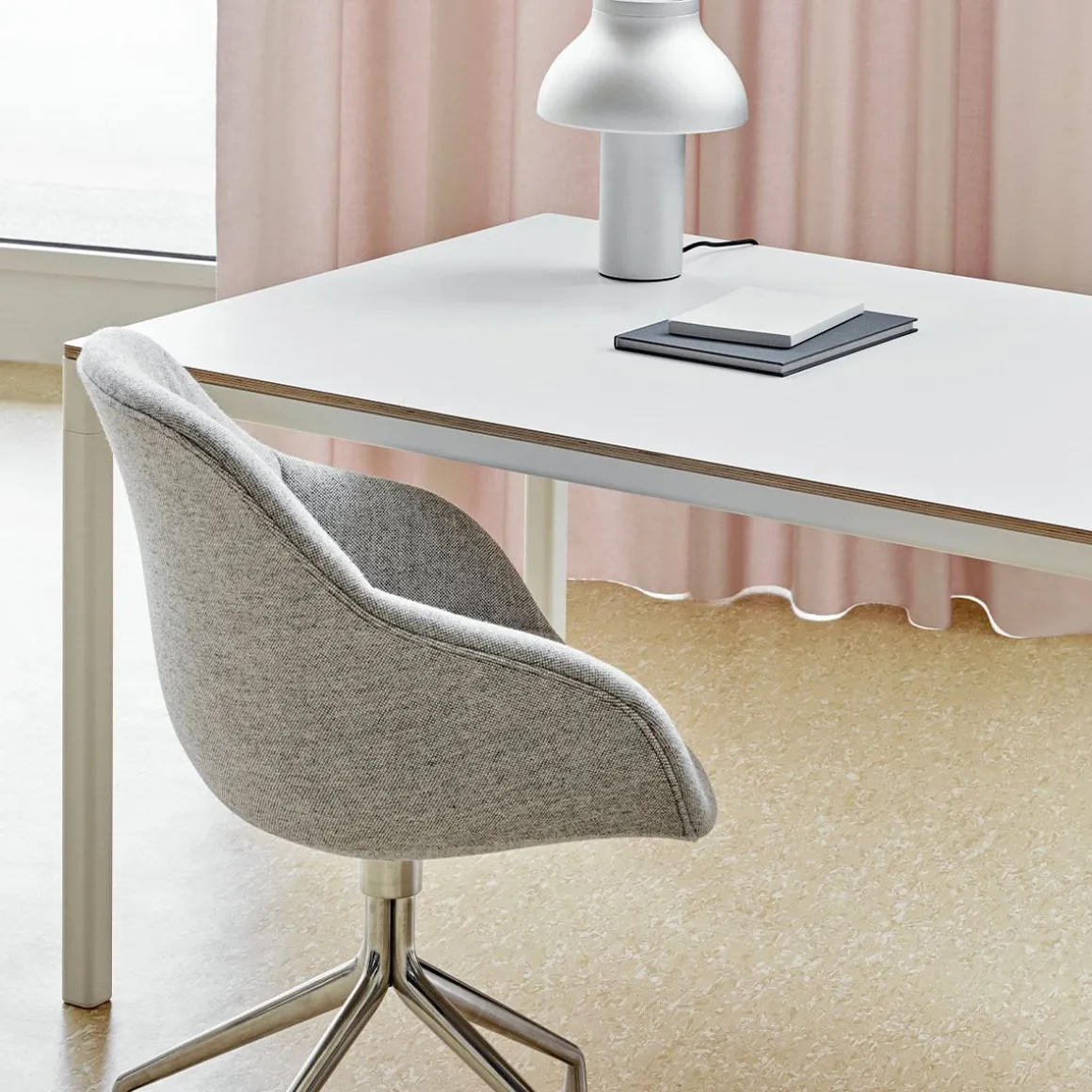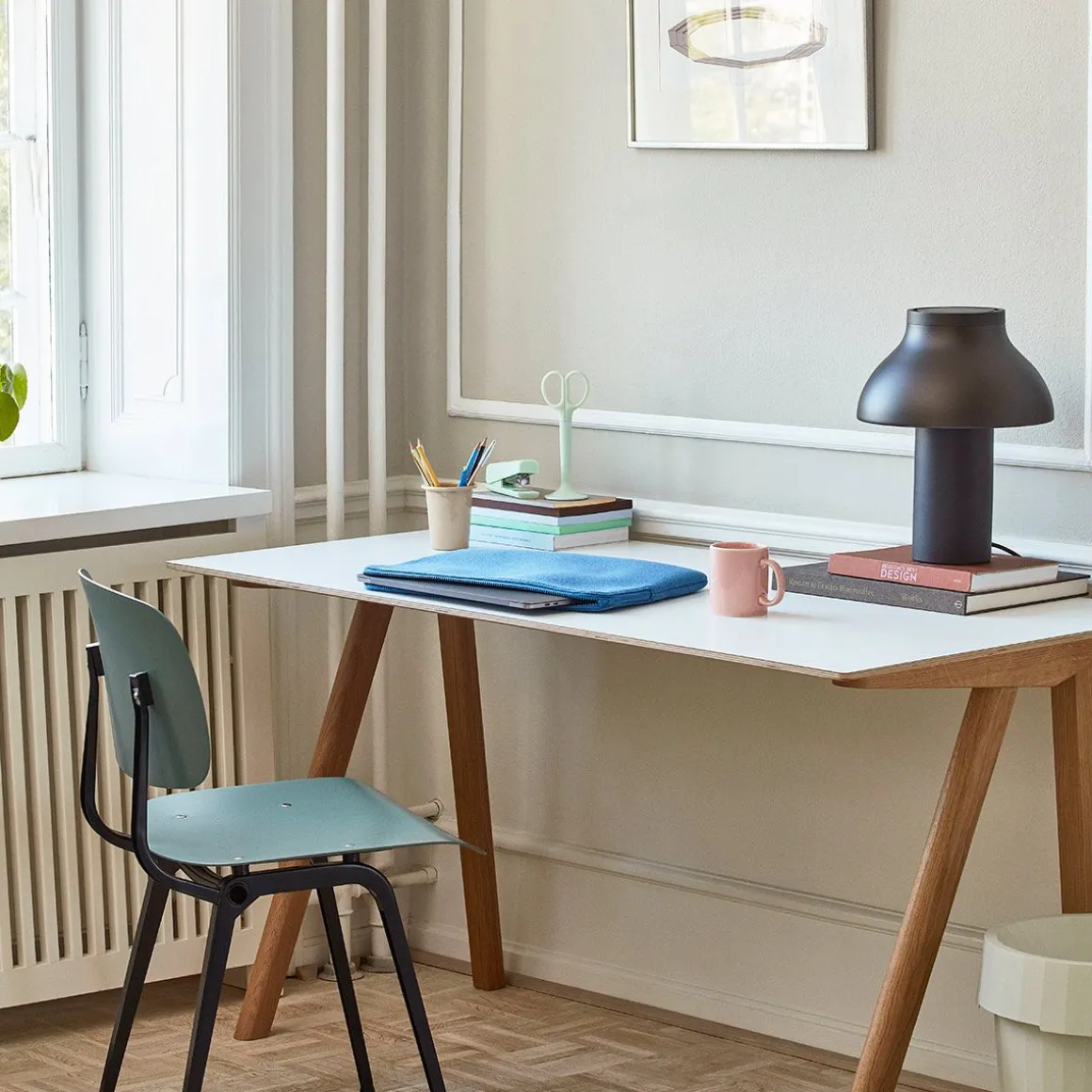 Lampe à poser PC de Hay par Pierre Charpin. Les lampes de table PC de Pierre Charpin sont une collection de lampes de table autoportantes raffinées. Les lampes sont construites en aluminium anodisé, ce qui rend la surface plus résistante à la corrosion. La source lumineuse est cachée de la vue par un diffuseur moulé en polycarbonate amovible, créant à la fois un effet de lumière directionnel doux et déterminant la forme de la lampe elle-même.