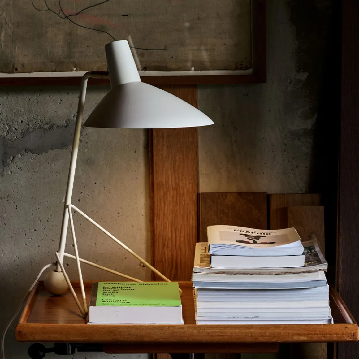 Après le succès de son lampadaire, &Tradition a élargi la série Tripod pour inclure une lampe de table avec le même design intemporel. Tripod, une lampe de table construite en acier thermolaqué avec des détails en laiton, reflète le minimalisme épuré du duo historique Hvidt & Mølgaard basé à Copenhague. Considérés comme les anciens maîtres du design danois du milieu du siècle, leurs pièces confèrent souvent un élément sculptural aux espaces qu’ils habitent. Cette version réduite de la lampe de table est disponible en trois couleurs.