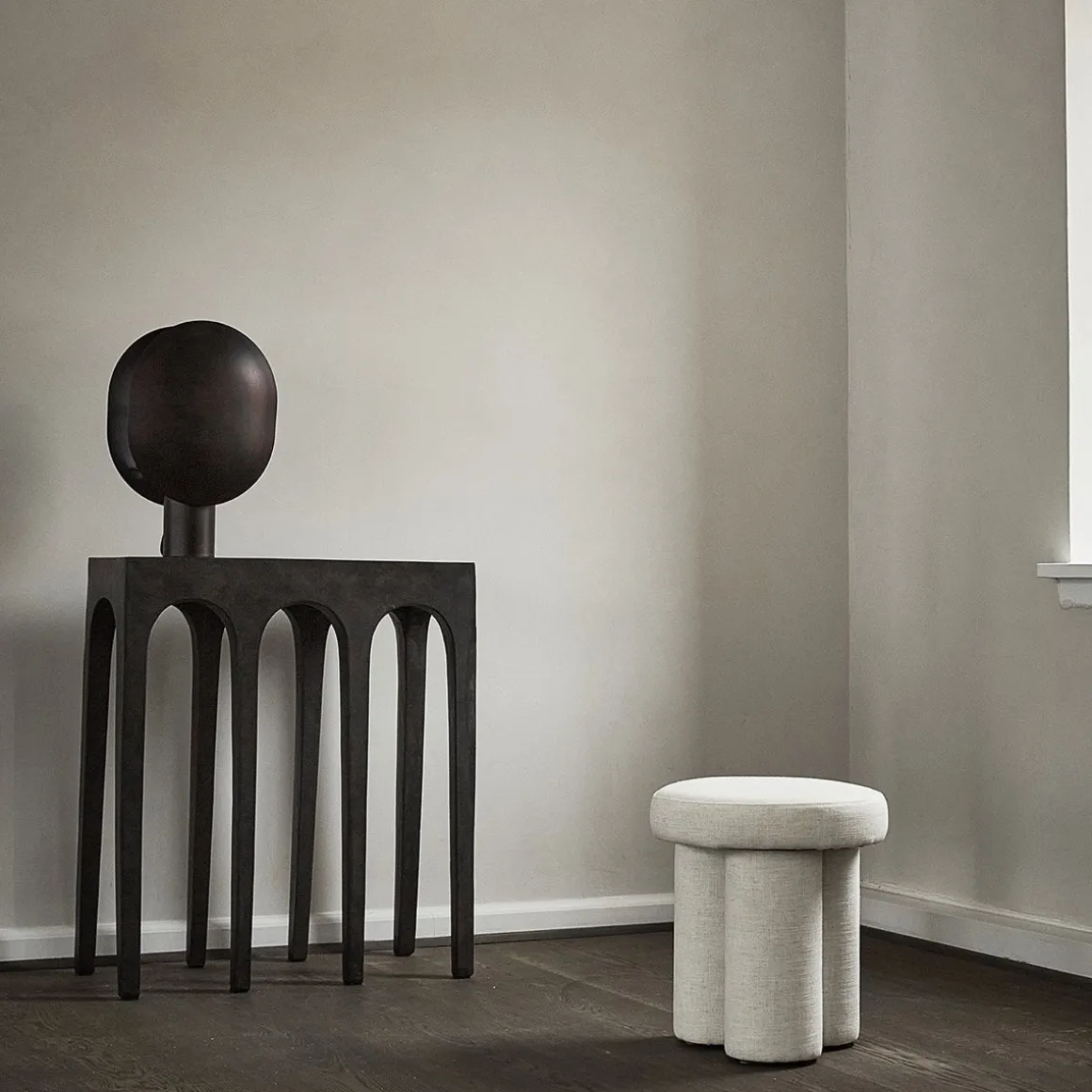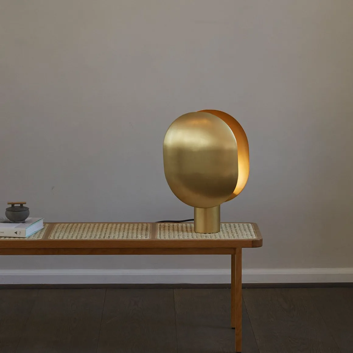 La série Clam se caractérise par ses deux abat-jour opposés jouant avec l’éclairage direct et indirect. D’une manière très japonaise, la lampe minimaliste reflète en douceur la lumière des deux côtés des écrans métalliques légèrement incurvés. La lampe est magnifiquement conçue en métal oxydé, plaqué et ensuite brossé à la main.