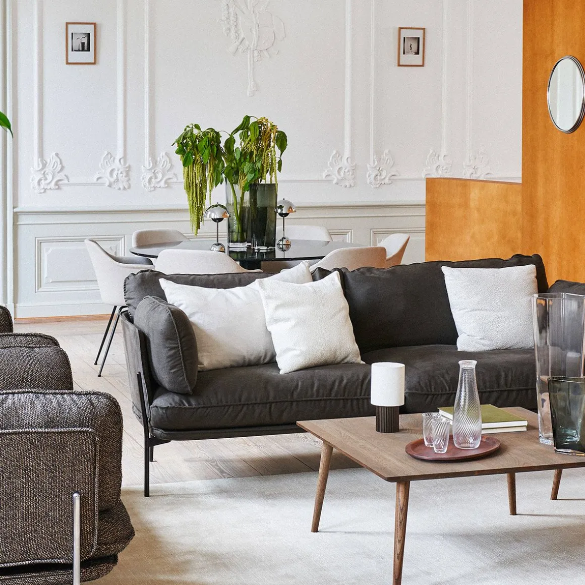 Assurez l’ambiance avec Manhattan SC52, une lampe de table portable de Space Copenhagen. Sa base d’inspiration industrielle est en aluminium anodisé avec des détails à colonnes; une nuance de toile de couleur crème se trouve au sommet. Cette lampe alimentée par batterie peut fonctionner pendant onze heures au réglage le plus élevé, avec une option de batterie supplémentaire qui permet un fonctionnement supplémentaire. Il se recharge facilement avec un câble USB magnétique ou un plateau de chargement.