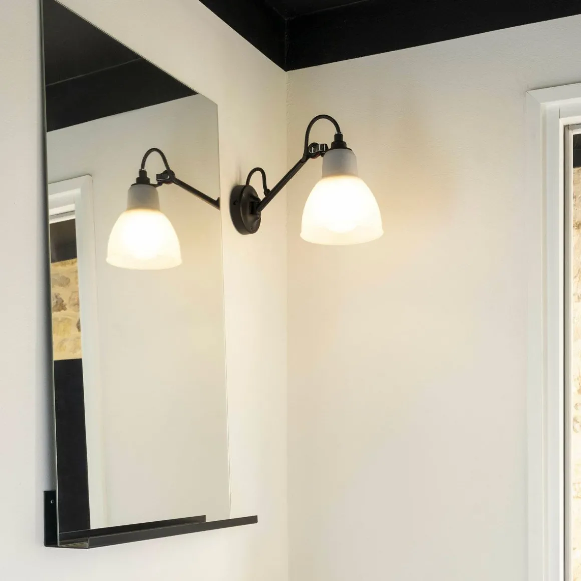 Lampe Gras n°104 bathroom de DCW éditions par Bernard-Albin Gras. Montée sur un bras court pivotant, la Lampe Gras N°104 Bathroom s’intègre à toutes les morphologies de salle de bain. IP44 : l’étui de verre sablé se visse dans l’abat-jour pour encapsuler l’ampoule E27.