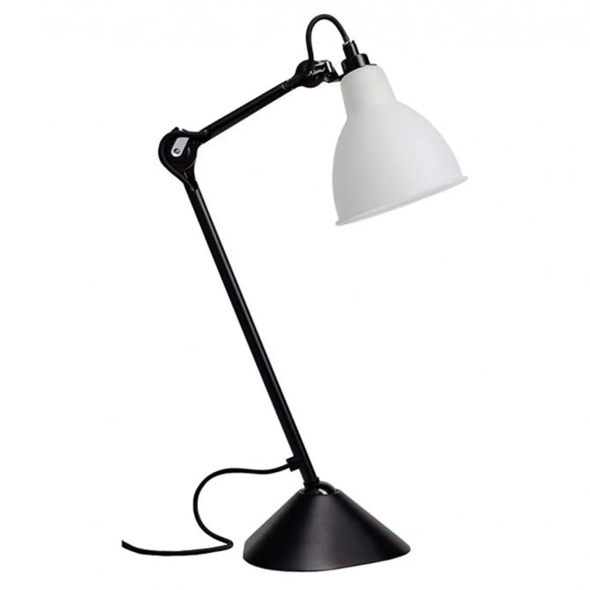 Réédition de la lampe de bureau Gras n°205. En 1921, Bernard-Albin Gras crée une gamme de lampes pour l’industrie et les bureaux d’études. La lampe GRAS, dont le brevet sera racheté par la société RAVEL en 1927, est étonnante par son ergonomie et la simplicité de sa mécanique – ni vis, ni soudure – qui lui confère une robustesse à toute épreuve. Mais Bernard-Albin Gras est aussi un des premiers designers du XXe siècle : non content d’innover sur tous les plans, il ajoute à ses créations une esthétique fonctionnelle originale notamment dans le dessin des fontes et des bielles.