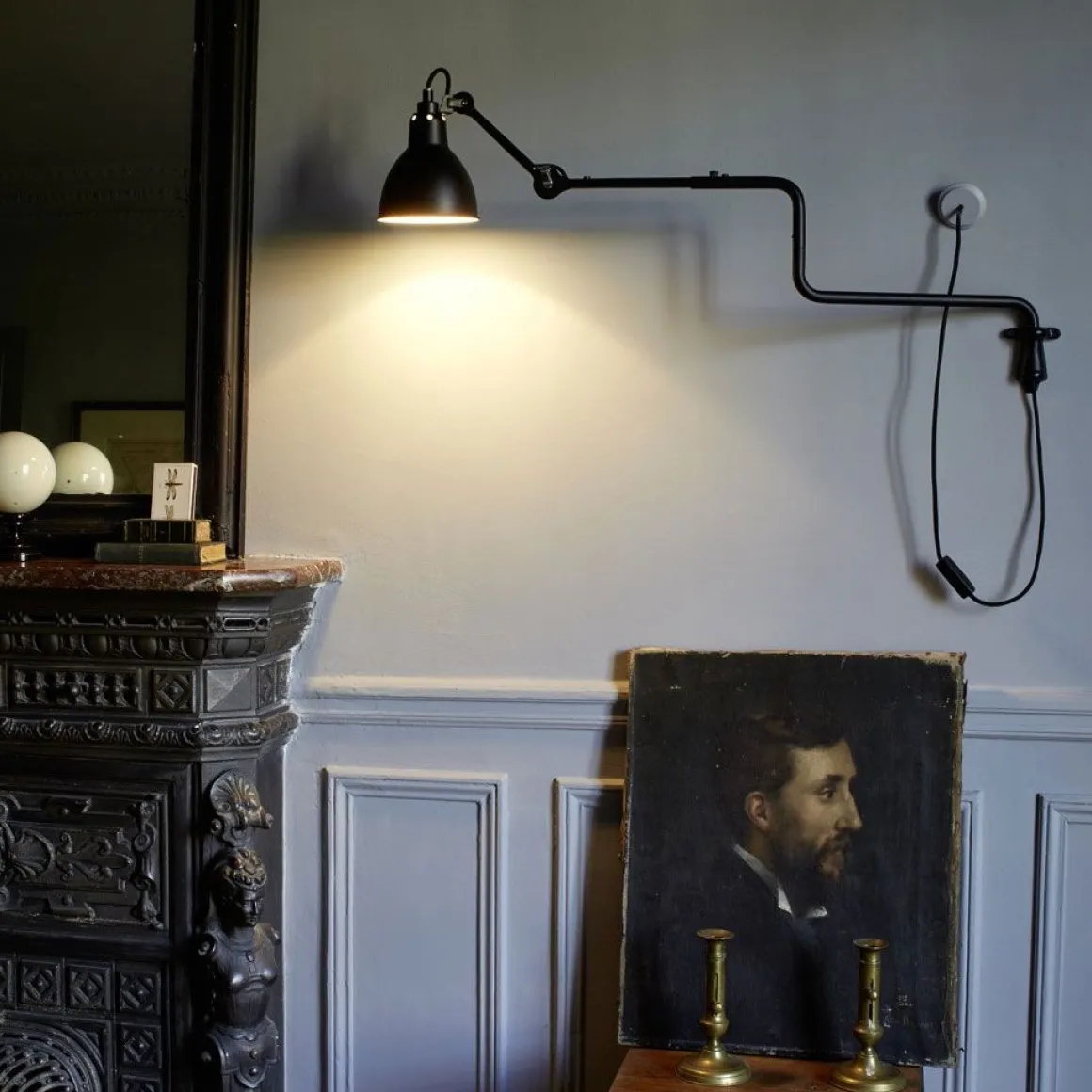 La superbe applique murale Lampe Gras N°303 articulée à double coude dessinée par Bernard-Albin Gras est une icône du design du XXème siècle, à la superbe finition noir satiné, éditée par DCW Editions. Conçue à l’origine pour les professionnels de l’industrie et des bureaux d’études, la Lampe Gras, dotée d’une esthétique unique, séduit les particuliers et éclaire les intérieurs du monde entier. Le style industriel élégant et robuste et la sublime finition noir mat de cette applique au design sobre lui confèrent une ligne intemporelle. Son bras à double coude peut s’étendre à 72 cm et la 2ème partie pivote sur son axe permettant des déplacements horizontaux, la bielle supportant le réflecteur pivote également et le réflecteur est orientable, ce qui rend cette applique murale très fonctionnelle et totalement polyvalente. Avec son design très graphique, l’applique murale N°303 sera parfaite dans une cuisine, au dessus du plan de travail, au dessus d’un lit en lampe de chevet, dans un coin du salon, ou pour éclairer un bureau ou un atelier. Grâce à une rondelle noire fournie, vous pouvez si vous le souhaitez dissimuler le branchement électrique.