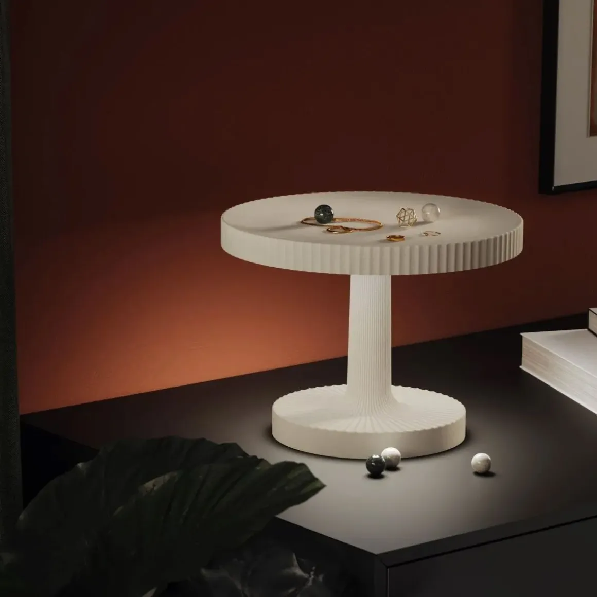 Welcome est un objet design qui s’adapte à l’environnement et au mode de vie de ceux qui y vivent, conçu pour différents usages : lampe portable et rechargeable à émission de lumière directe, c’est un dosseret sur une table chargée, c’est un vide poche. Proposé en blanc, noir et rouge, pour s’intégrer parfaitement dans n’importe quel contexte domestique et de restauration, à l’intérieur comme à l’extérieur. «La technologie que nous utilisons au quotidien a conduit à une hybridation des fonctions qui fait désormais partie de nos vies. Je ne suis plus sûr qu’une lampe ne doive apporter que de la lumière. Peut-être que ces petits outils qui nous accompagnent dans différents environnements et ambiances, sur une table à manger sur une table de chevet à côté de notre lit, pourraient aussi nous aider à accueillir d’autres objets, pour les mettre en valeur ou simplement pour les garder à portée de main. L’accueil vient d’un geste d’inclusion, d’une coexistence heureuse de fonctions pour des combinaisons inattendues.