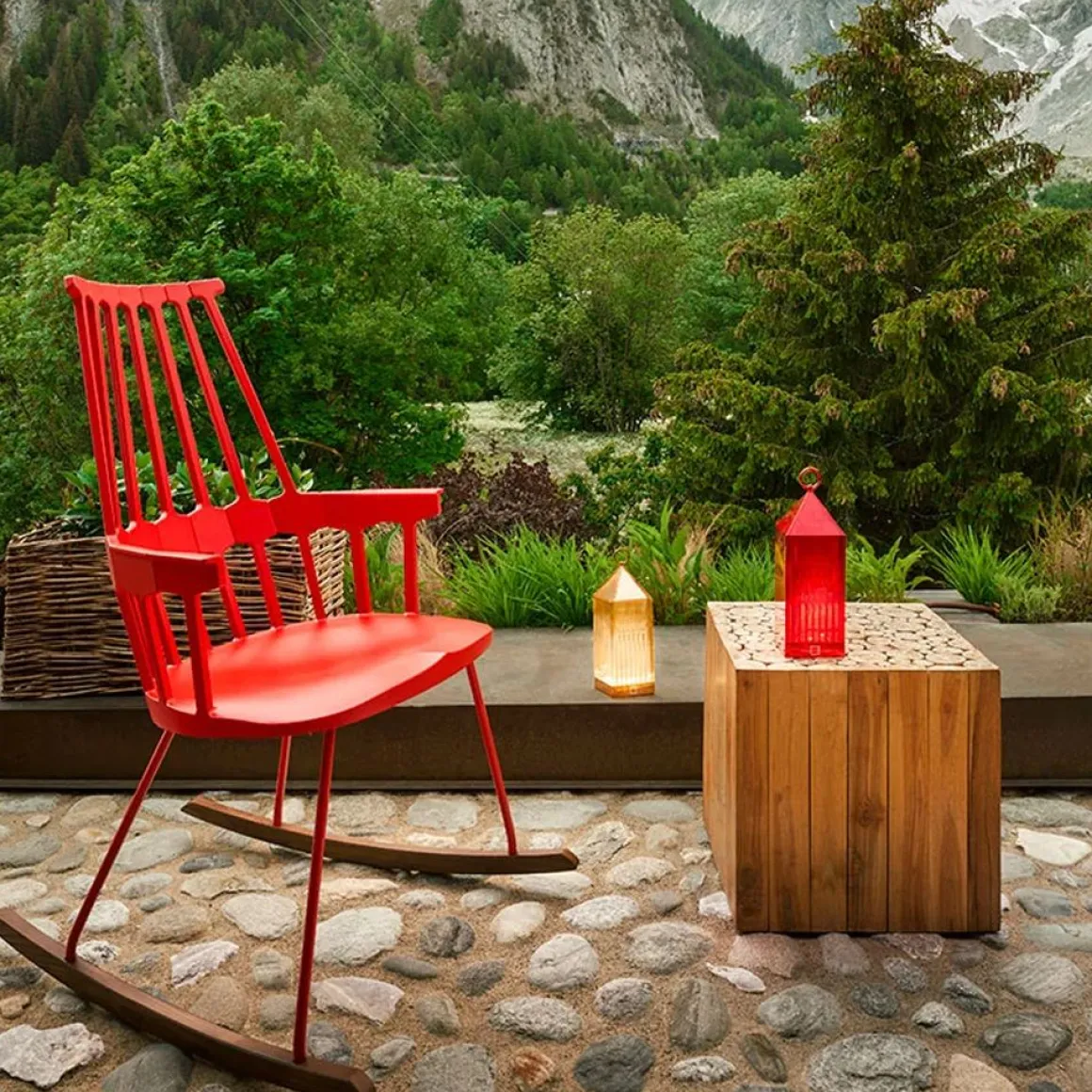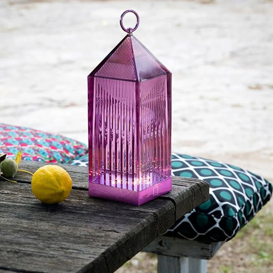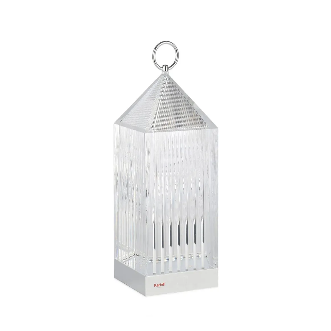 LANTERN de Fabio Novembre évolue dans cette nouvelle version en PMMA recyclé. Le socle rechargeable est désormais intégré au corps de la lampe, offrant une autonomie étendue jusqu’à 10 heures même à puissance maximale ainsi qu’une fonction variateur. Conformément à l’engagement de Kartell en faveur du développement durable, cette nouvelle lampe high-tech est désormais fabriquée à partir de PMMA recyclé. Il se décline dans les couleurs Cristal, Ambre, Glycine, Fumé et Rouge.