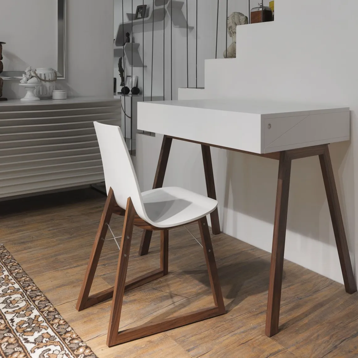 Bureau est un meuble bureau moderne, pour écrire, “naviguer” ou rêver. Il est parfait pour les petites habitations où les espaces deviennent polyfonctionnels. Grâce à sa capacité à se refermer sur lui-même, Bureau se distingue, en effet, par sa discrétion, dissimulant à l’intérieur la vie privée de son utilisateur.