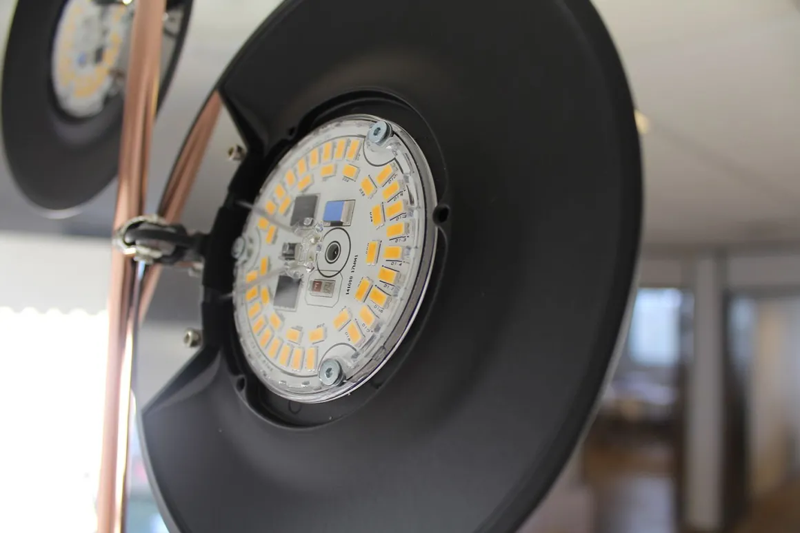 Sources (fournies) : 3 LED x 17W interchangeable, 4770 lumens, avoisine le flux lumineux d’une ampoule de 400W, 2700°K, 240V avec gradateur de sol L1