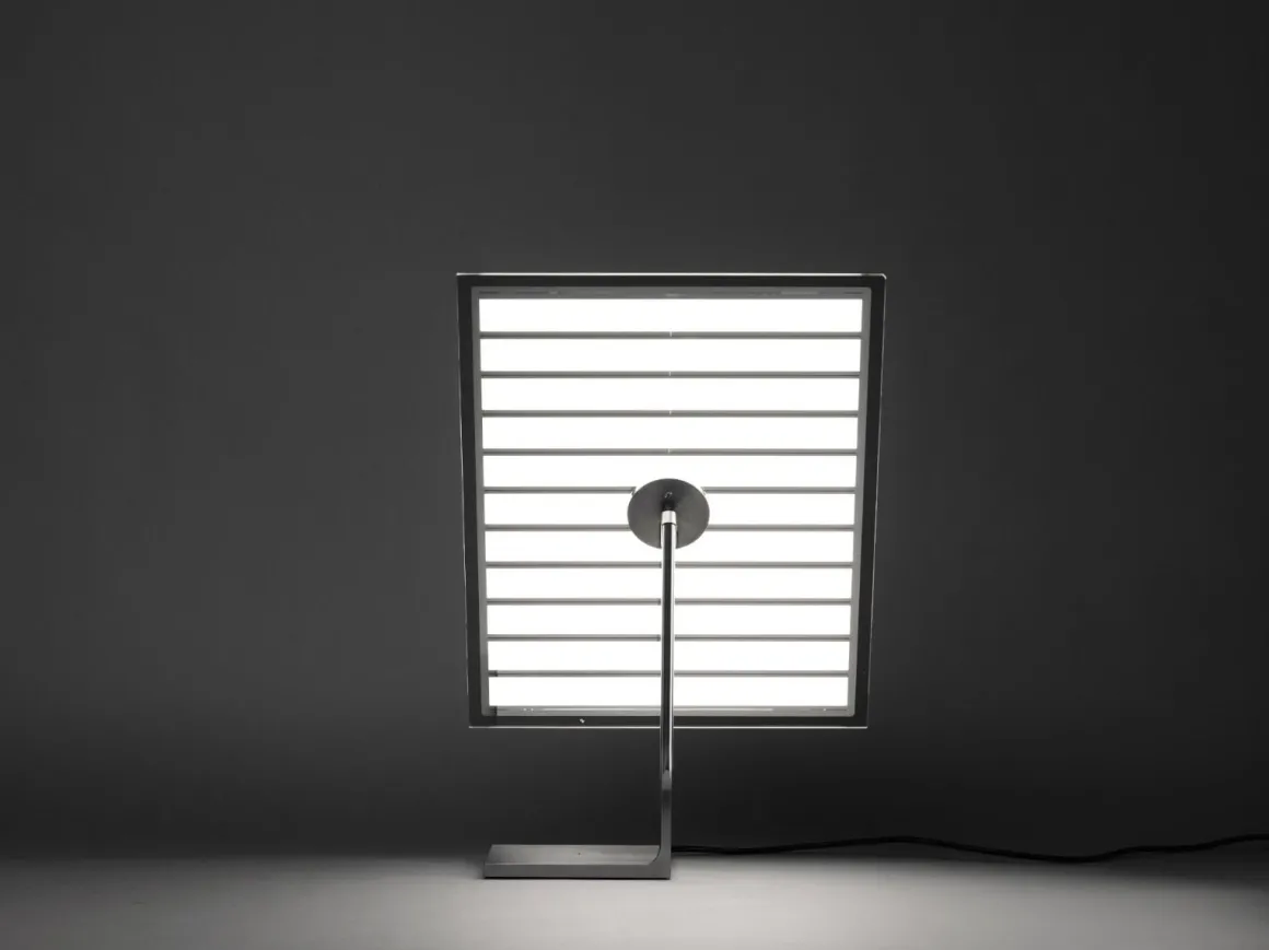 Imaginée par Philippe Starck, la lampe de table Light Photon, à technologie OLED est une lampe sophistiquée. Sa tête métallisée est articulée tandis que la base, tirée d’un bloc unique d’acier inox, loge le capteur optique d’allumage qui fait aussi office de variateur et reprend le dessin du logo « Flos 50 ». Édition spéciale limitée et numérotée à 500 pièces.