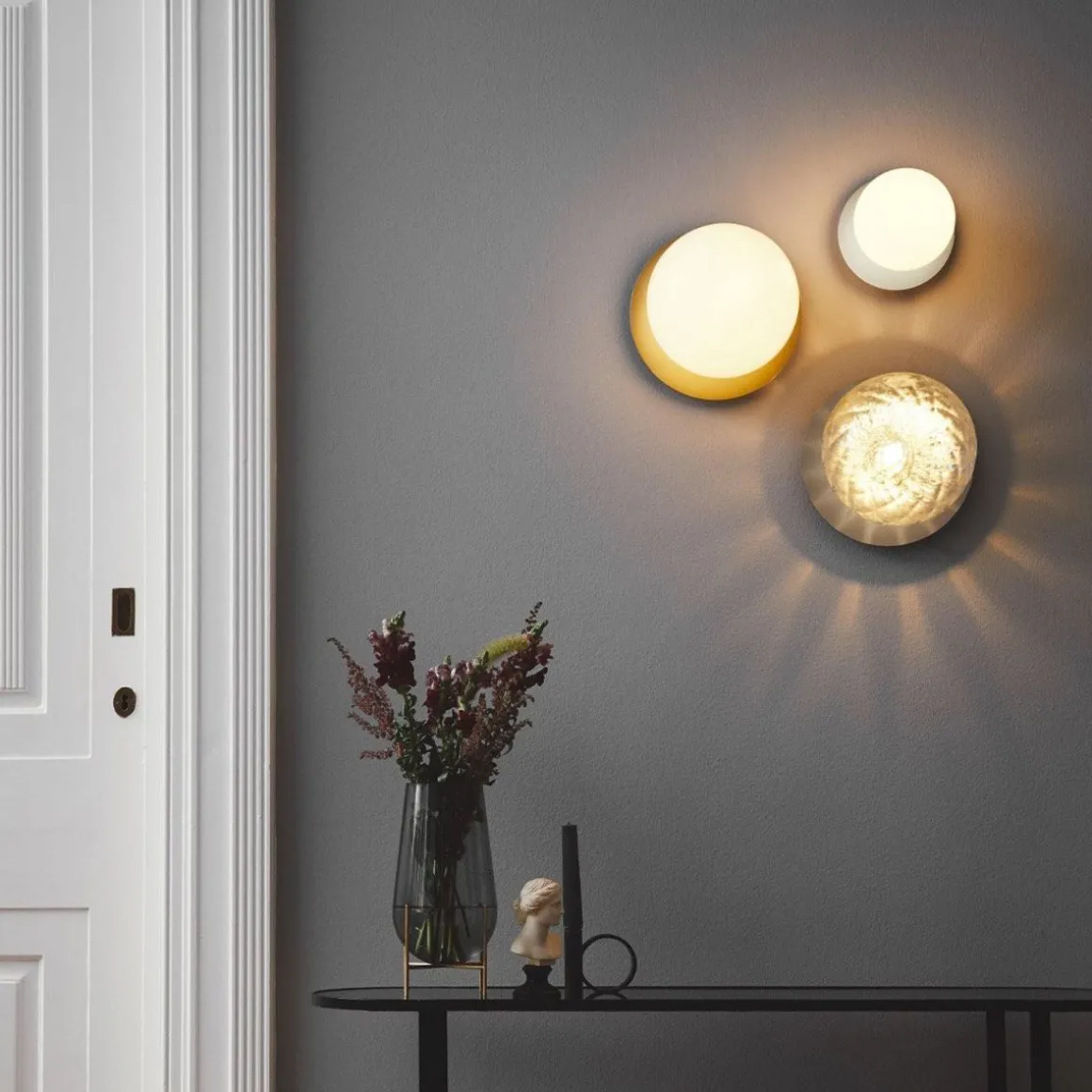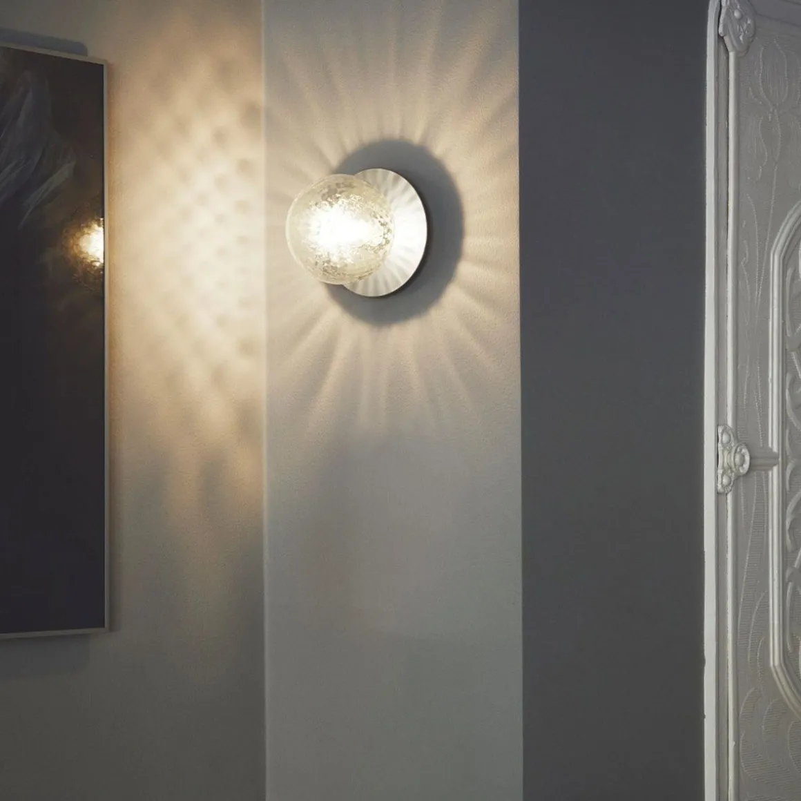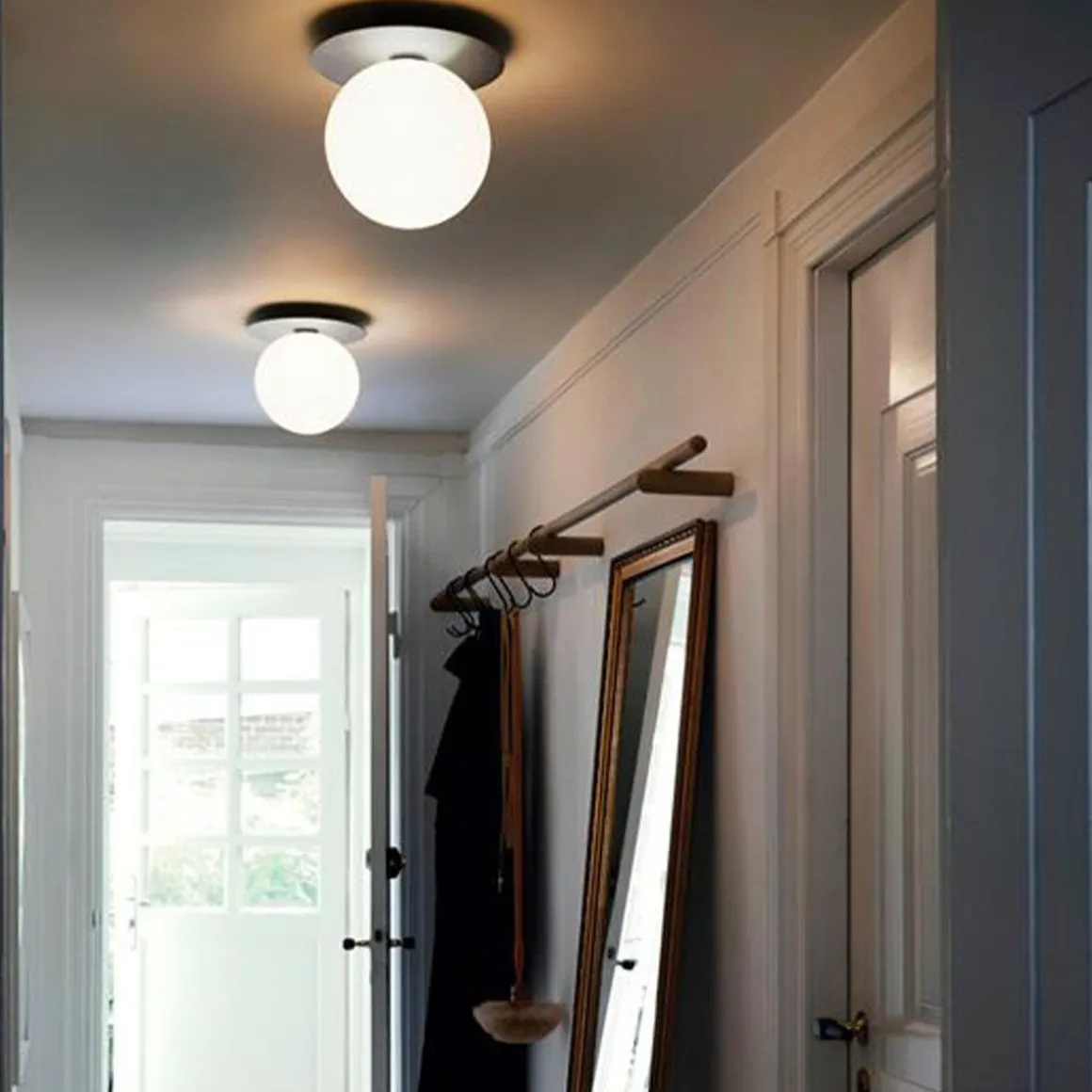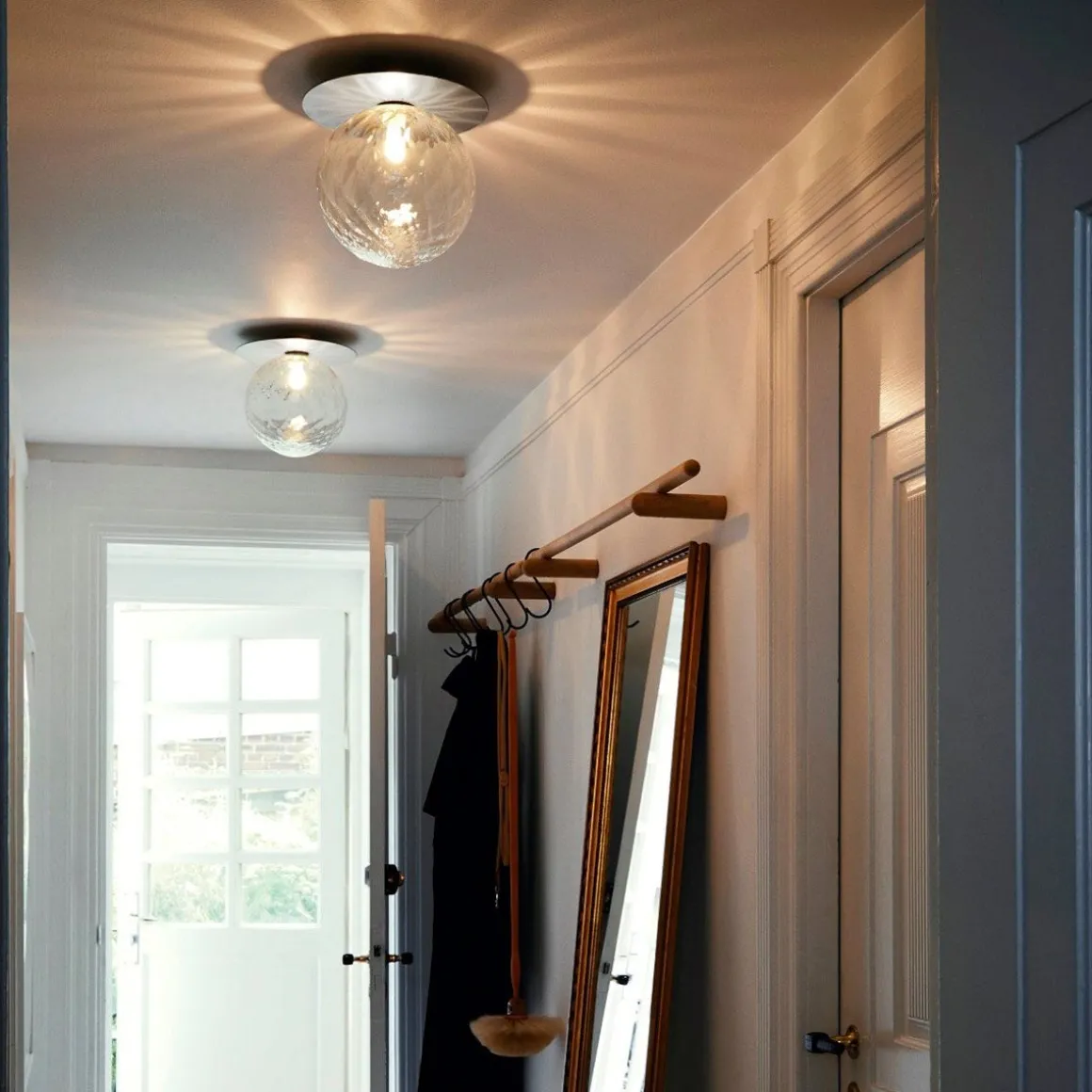 Liila 1 est une lampe unique, qui a fière allure sur le mur ou le plafond. Il est simple dans sa forme, composé d’une fine feuille ronde de métal et d’une sphère de verre unique soufflée à la bouche. Liila 1 convient également aux petites pièces et au hall d’entrée.