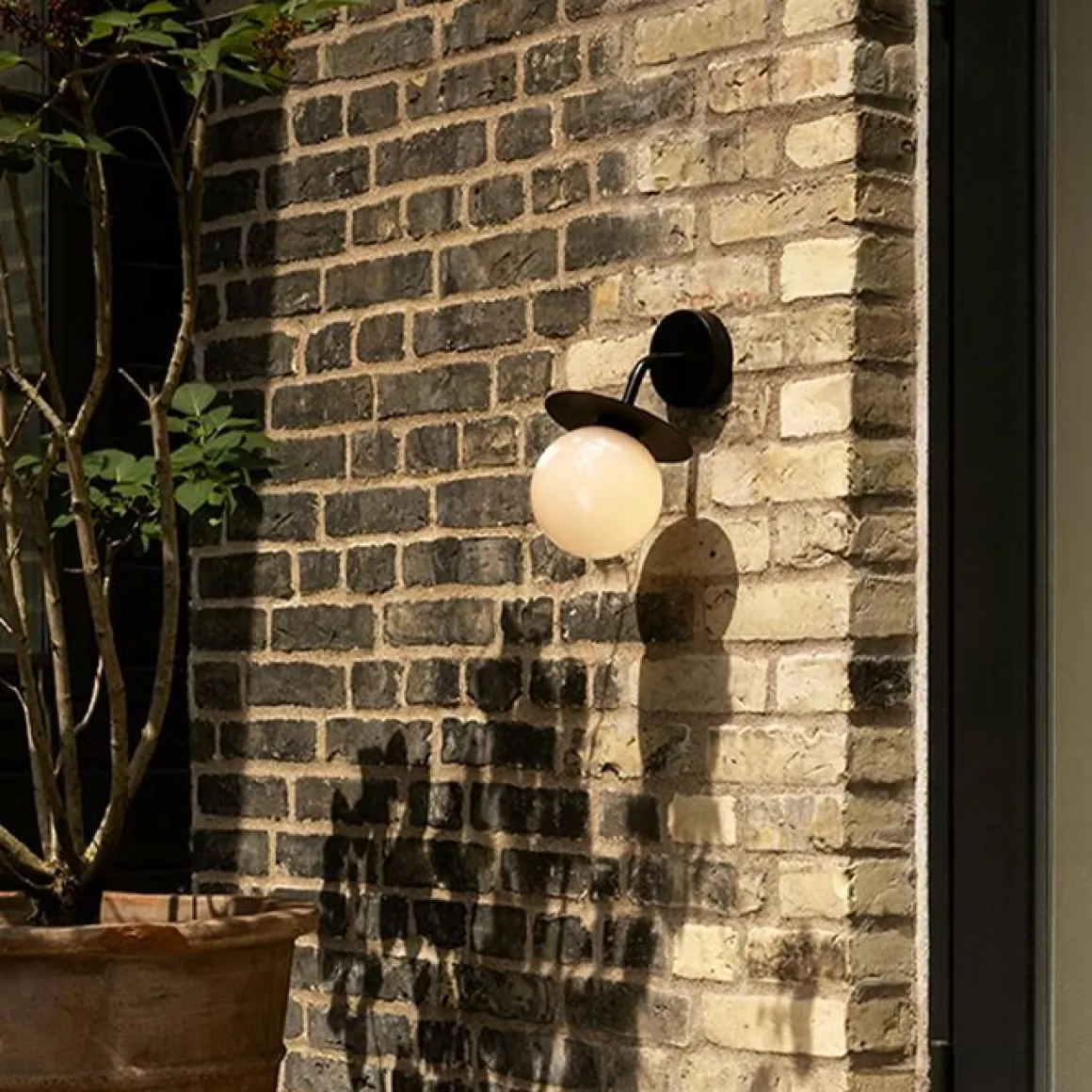Liila Wall Outdoor est une extension de la collection Liila et conçue pour être montée à l’extérieur sur des murs extérieurs. La lampe d’extérieur est construite avec une plaque arrière murale et un bras mince pour soutenir la fine feuille de métal ronde et le globe en verre soufflé à la bouche à partir duquel la lumière est réfléchie.