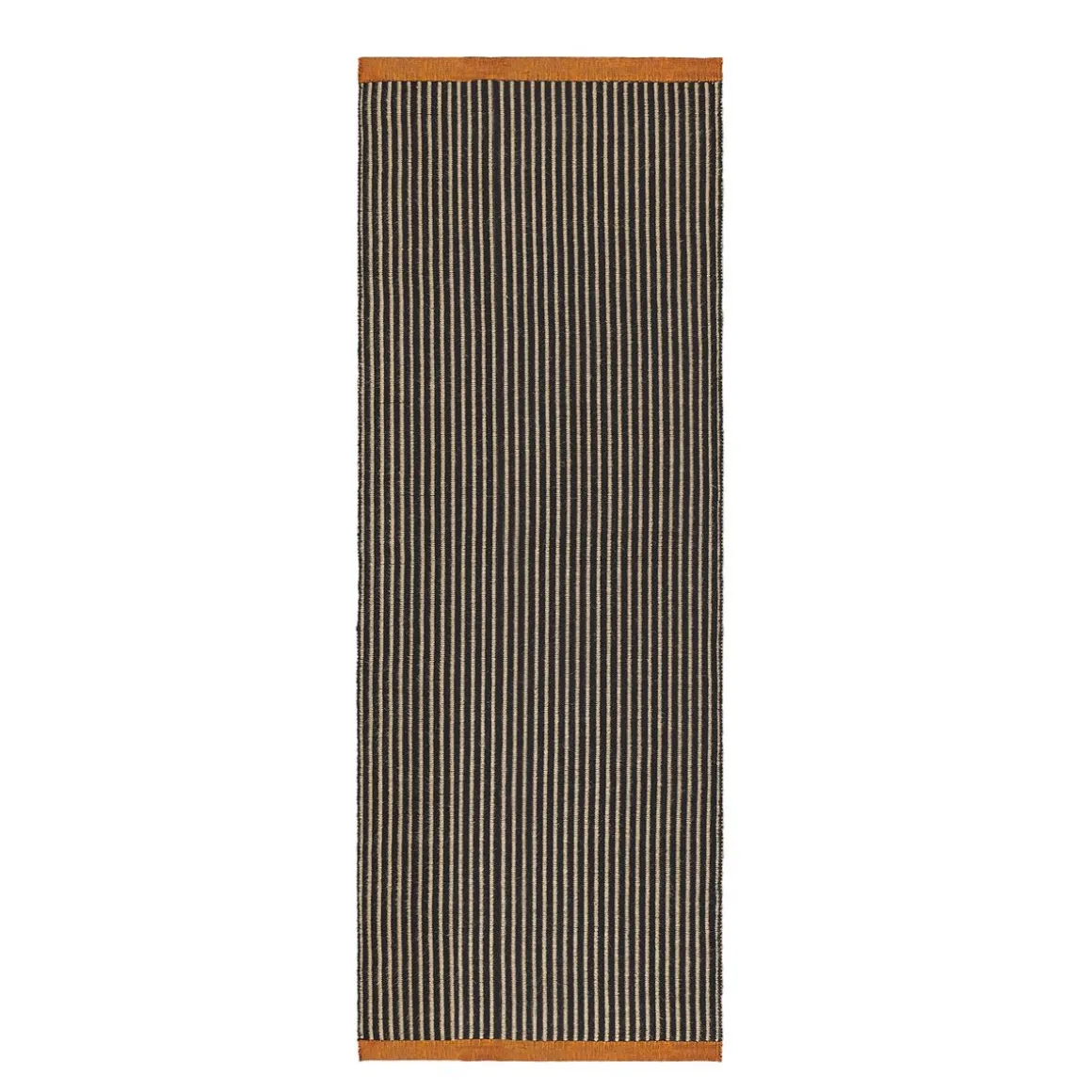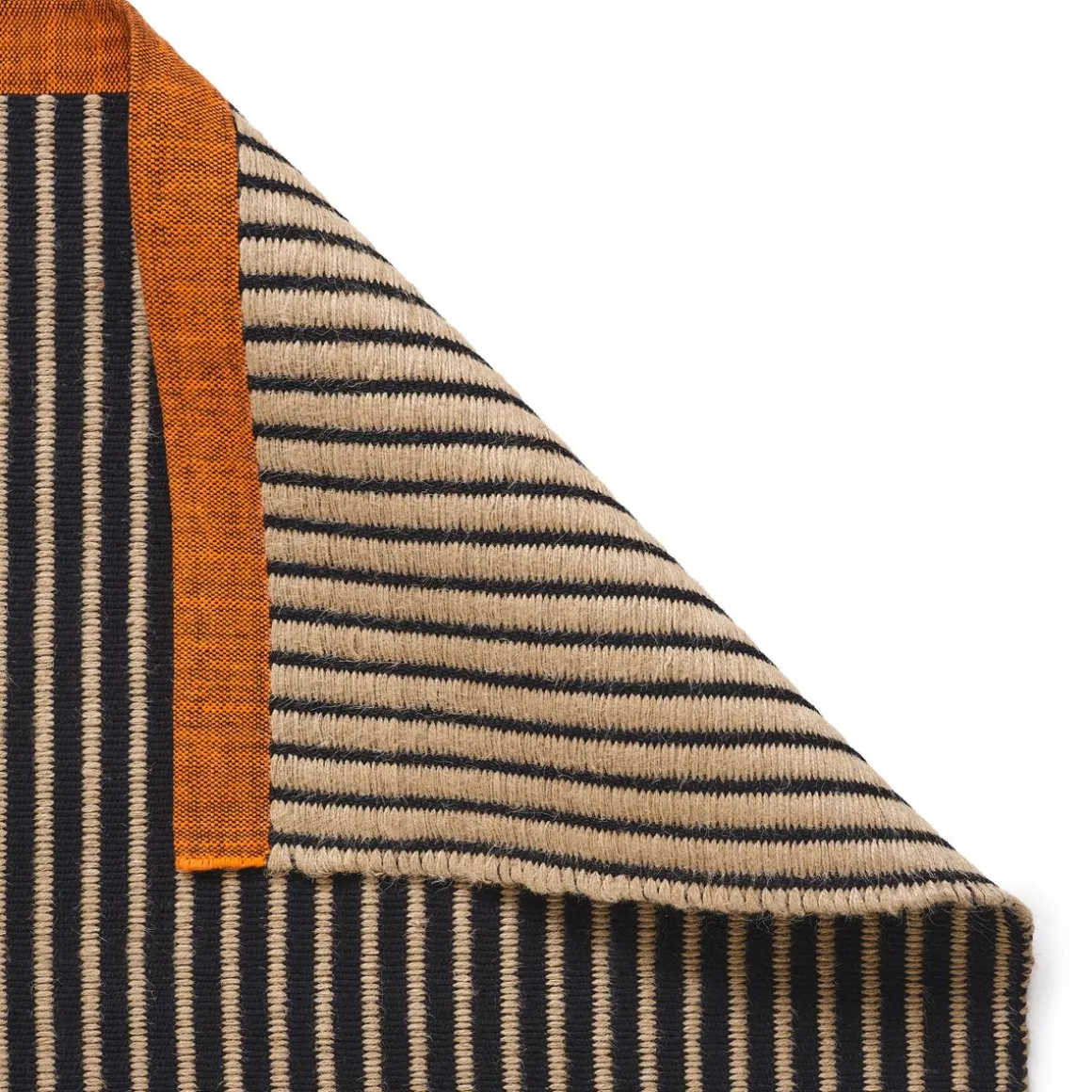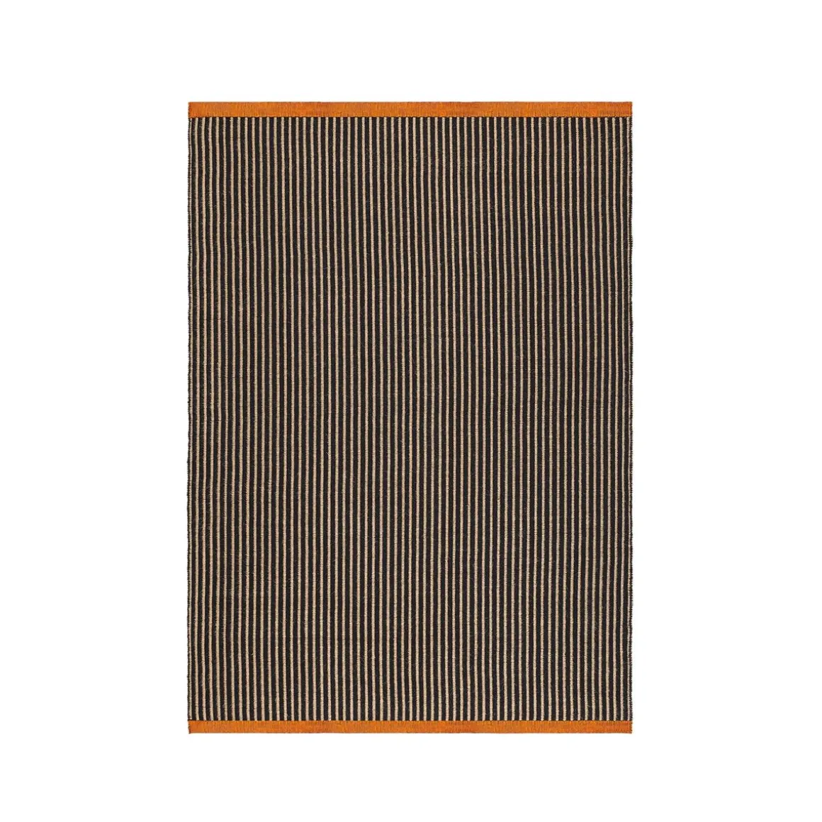 Le tapis LINE est confectionné dans un tissage plat réversible en fils mélangés, offrant polyvalence et style. La bande tissée orange contrastante apporte une touche de couleur vive, tandis que les rayures noires lui confèrent un style dynamique et saisissant. Disponible en trois tailles différentes, le tapis LINE s’adapte à une grande variété d’espaces, qu’il s’agisse de mettre en valeur un petit espace ou d’apporter une touche d’originalité à une pièce plus grande.