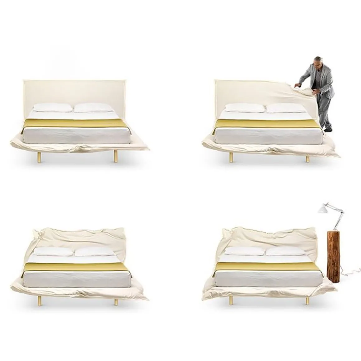 Big Hug est un lit double rembourré qui peut être modélisé à volonté, avec revêtement amovible, complet avec sommier à lattes en bois. Avec des lignes confortables et accueillantes, il se veut modelé et façonné pour offrir confort et détente. Une pièce unique qui veut s’envelopper dans un « gros câlin ».