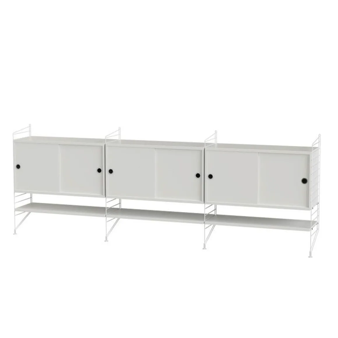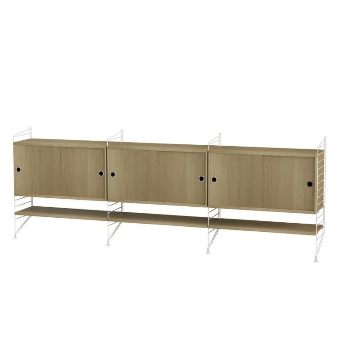 Une solution de buffet élégante et propre au sol avec de nombreuses possibilités de rangement avec des étagères supplémentaires en dessous, parfaites pour vos livres de poche préférés.