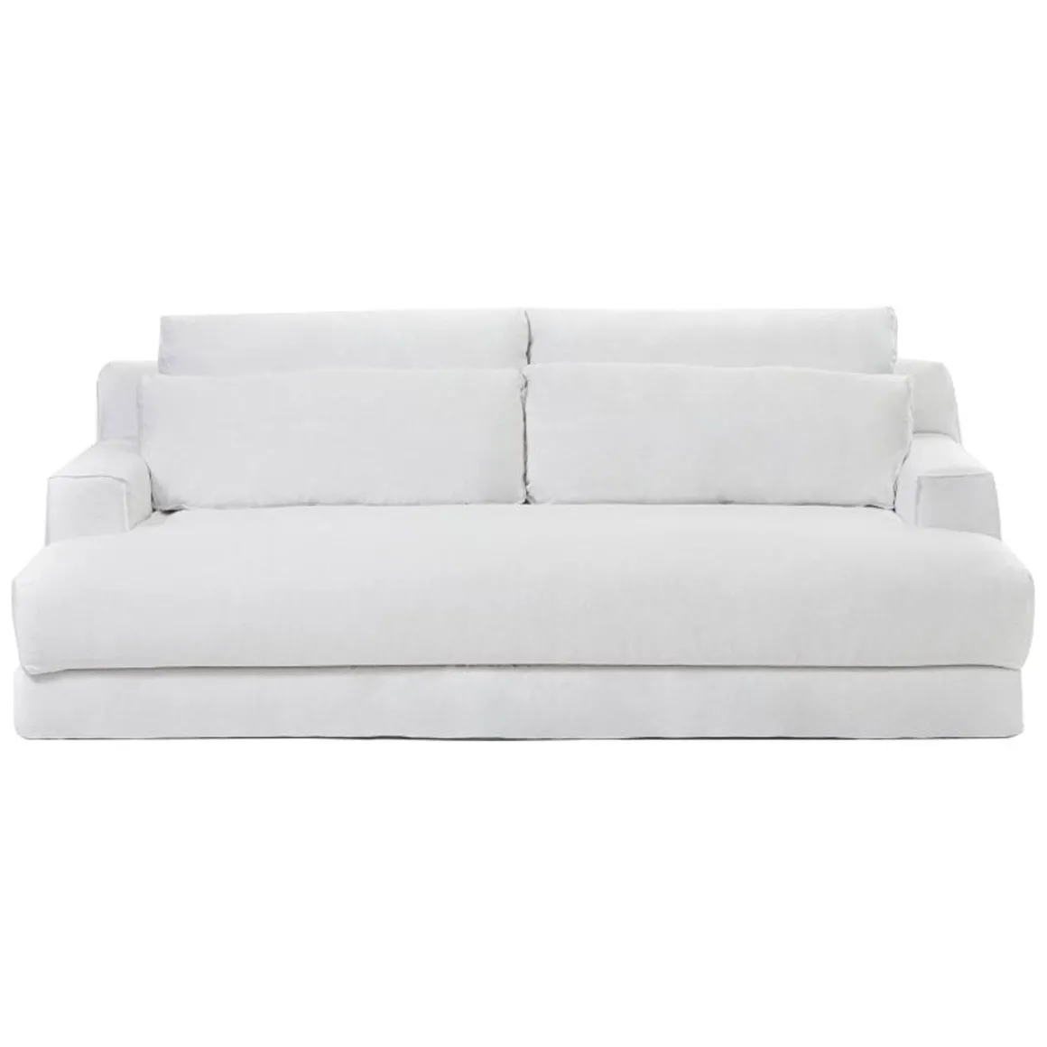 Un coussin de dossier en plume d’oie cloisonné et fibres de polyester. Tissus déhoussables.
