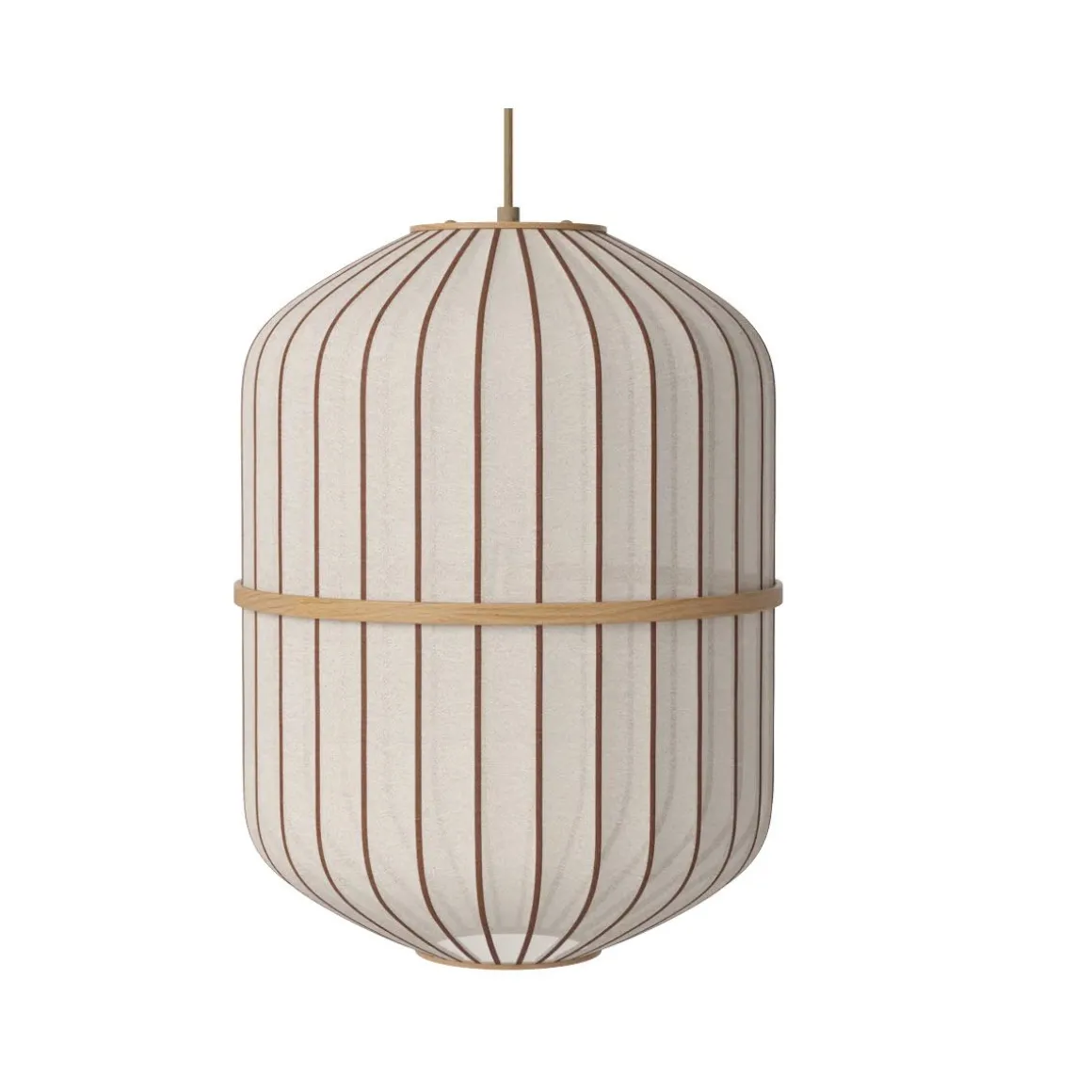 Lucén de Bolia par Ferriani Sbolgi. Découvrez l’harmonie qui naît du mélange de tradition et de modernité. D’une parfaite expression Japandi, ces lampes se déclinent en une variété de formes et de tailles, apportant une douce luminosité à tout espace. Certifiées FSC™, elles sont réalisées avec une structure métallique légère recouverte d’anneaux de chêne et d’un tissu délicatement drapé.