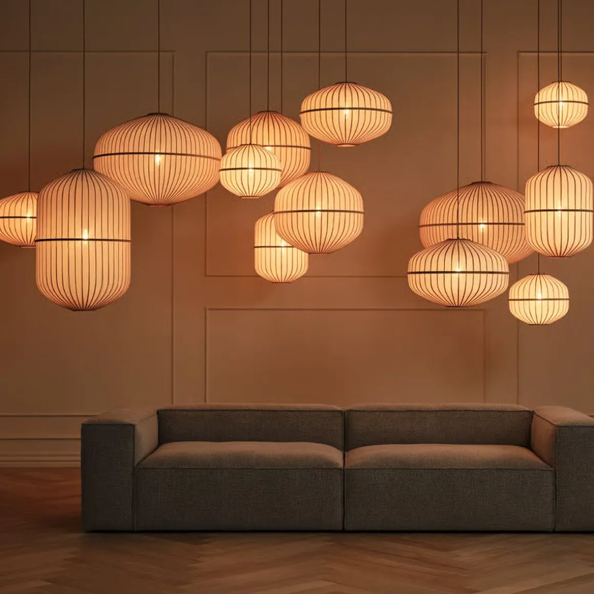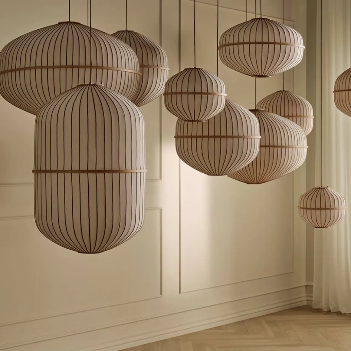 Lucén de Bolia par Ferriani Sbolgi. Découvrez l’harmonie qui naît du mélange de tradition et de modernité. D’une parfaite expression Japandi, ces lampes se déclinent en une variété de formes et de tailles, apportant une douce luminosité à tout espace. Certifiées FSC™, elles sont réalisées avec une structure métallique légère recouverte d’anneaux de chêne et d’un tissu délicatement drapé.