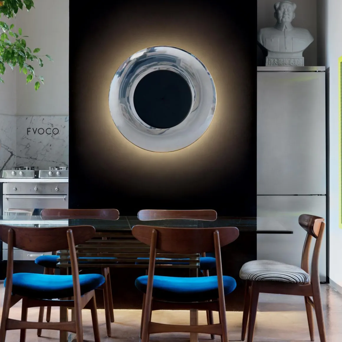 Imaginée par le designer français Ferréol Babin, l’applique lunaire crée un effet lumineux surprenant, inspiré du phénomène produit par une éclipse. Elle se compose de deux disques bien distincts : le premier central étant un réflecteur en aluminium blanc alors que le second joue le rôle de diffuseur grâce à un matériau en méthacrylate. En changeant la position de ce disque, on peut moduler l’intensité lumineuse, et créer différents effets : exactement comme lors d’une éclipse ! Innovante et très graphique, l’applique Lunaire vous permet d’interagir avec la lumière pour faire évoluer la puissance du flux lumineux selon vos besoins. Cette applique tendance est à la fois fonctionnelle, design et sensible, elle donne envie de contempler la lumière émise, d’observer les nuances et les ombres qu’elle génère.