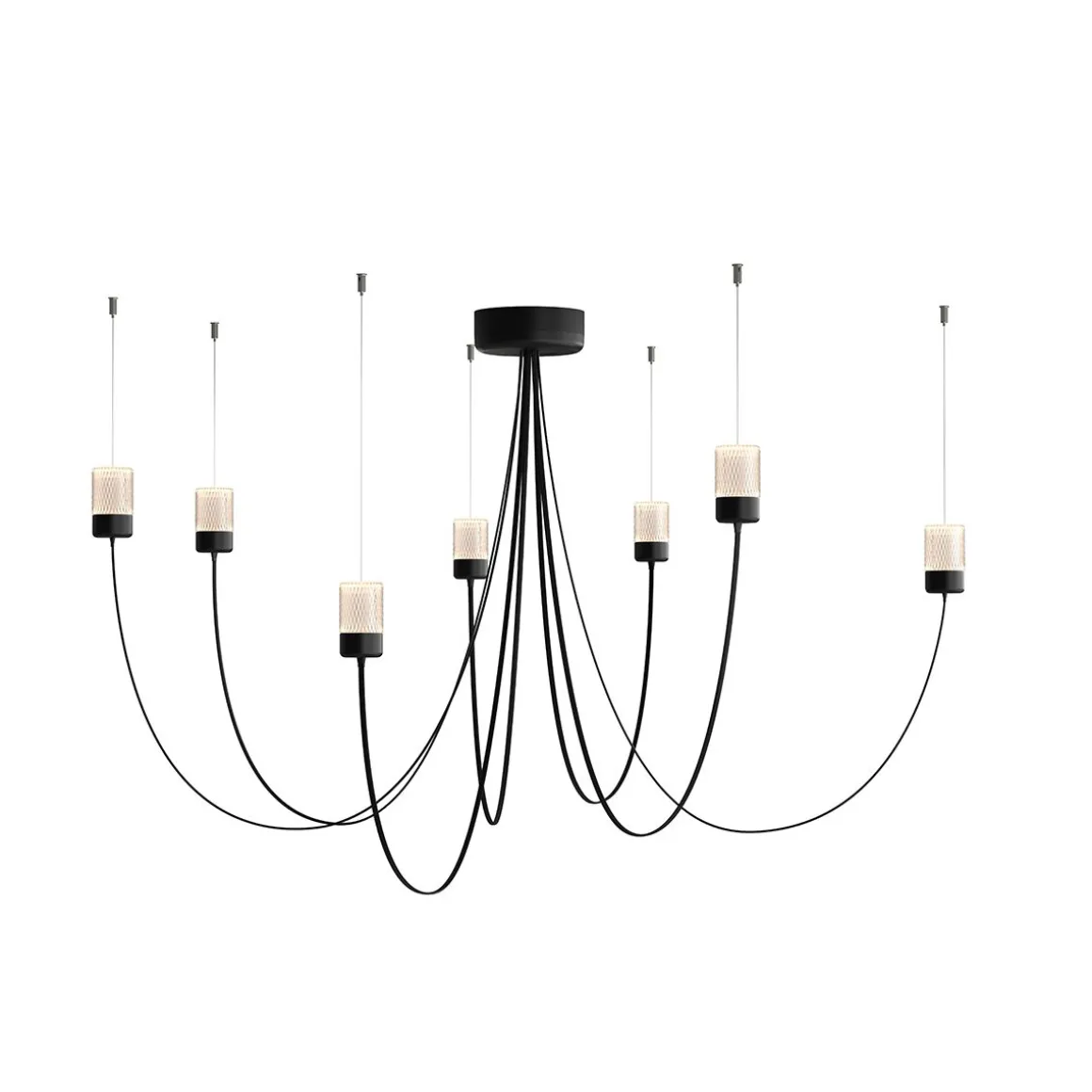 Matériaux : verre à facettes avec lumière en acier enduit de poudre, fil de suspension ultra fin et tressé, câble plat