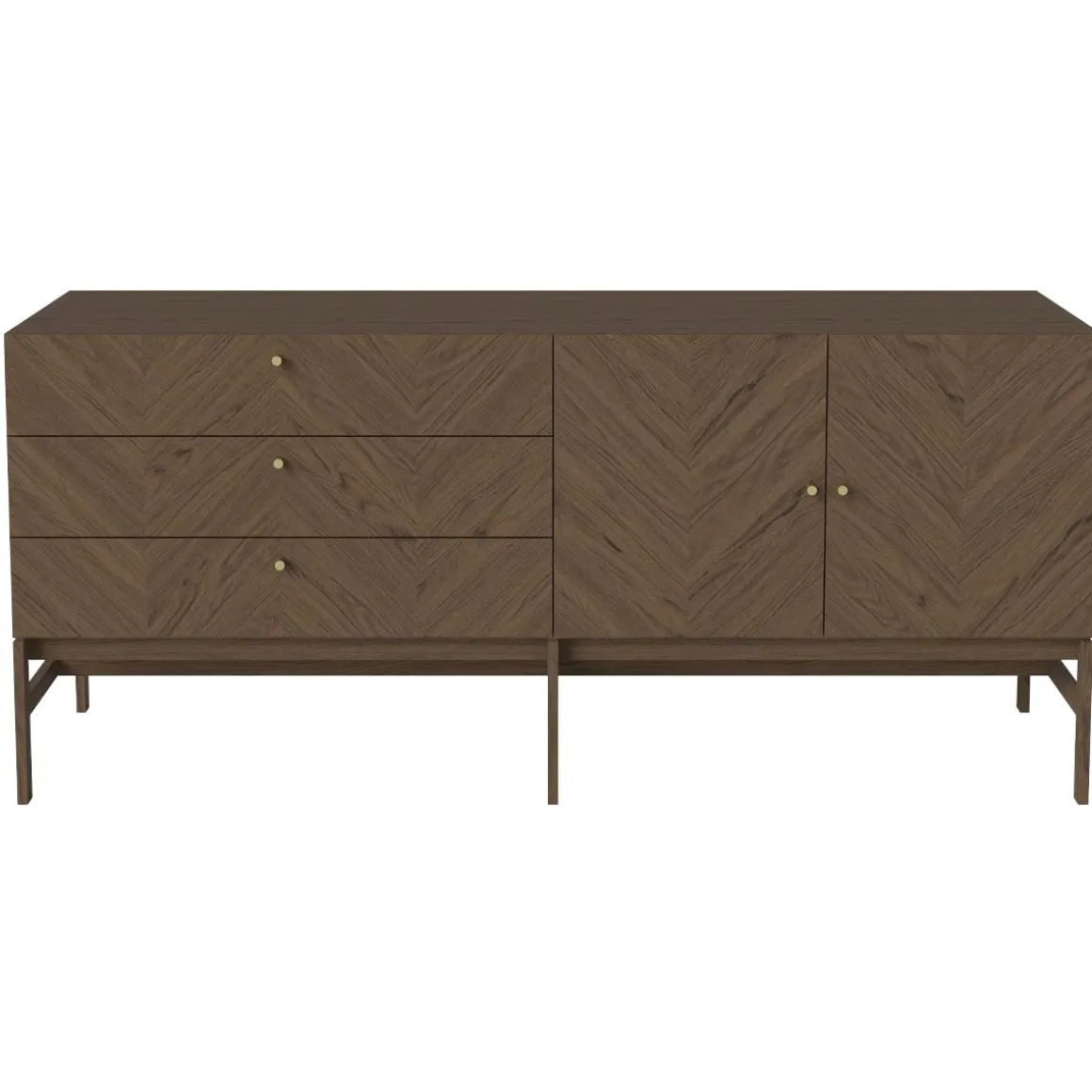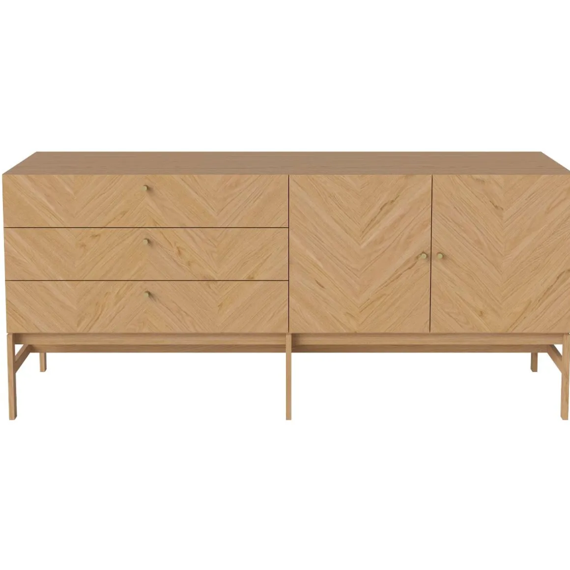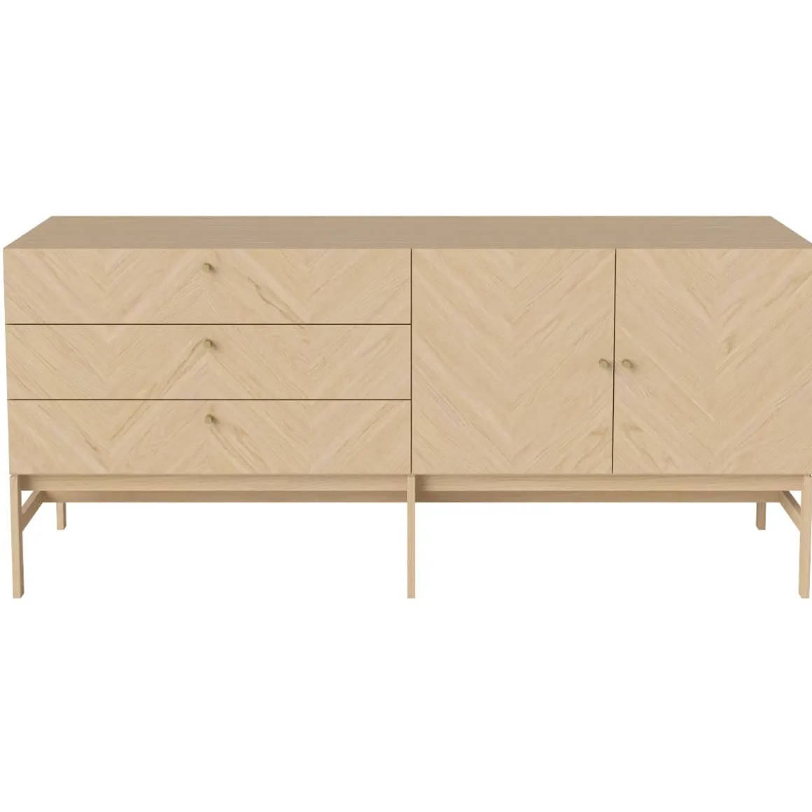 Luxe de Bolia par Michael H. Nielsen. La série Luxe, conçue par le designer danois Michael H. Nielsen, comprend une élégante gamme de meubles de rangement, de meubles multimédia et de meubles bar. Chaque modèle arbore un motif à chevrons accrocheur, qui reflète élégamment la lumière et donne vie au design. Tous les modules de tiroirs sont équipés d’un système de fermeture amortie. Un design élégant, alliant fonctionnalité et esthétique.