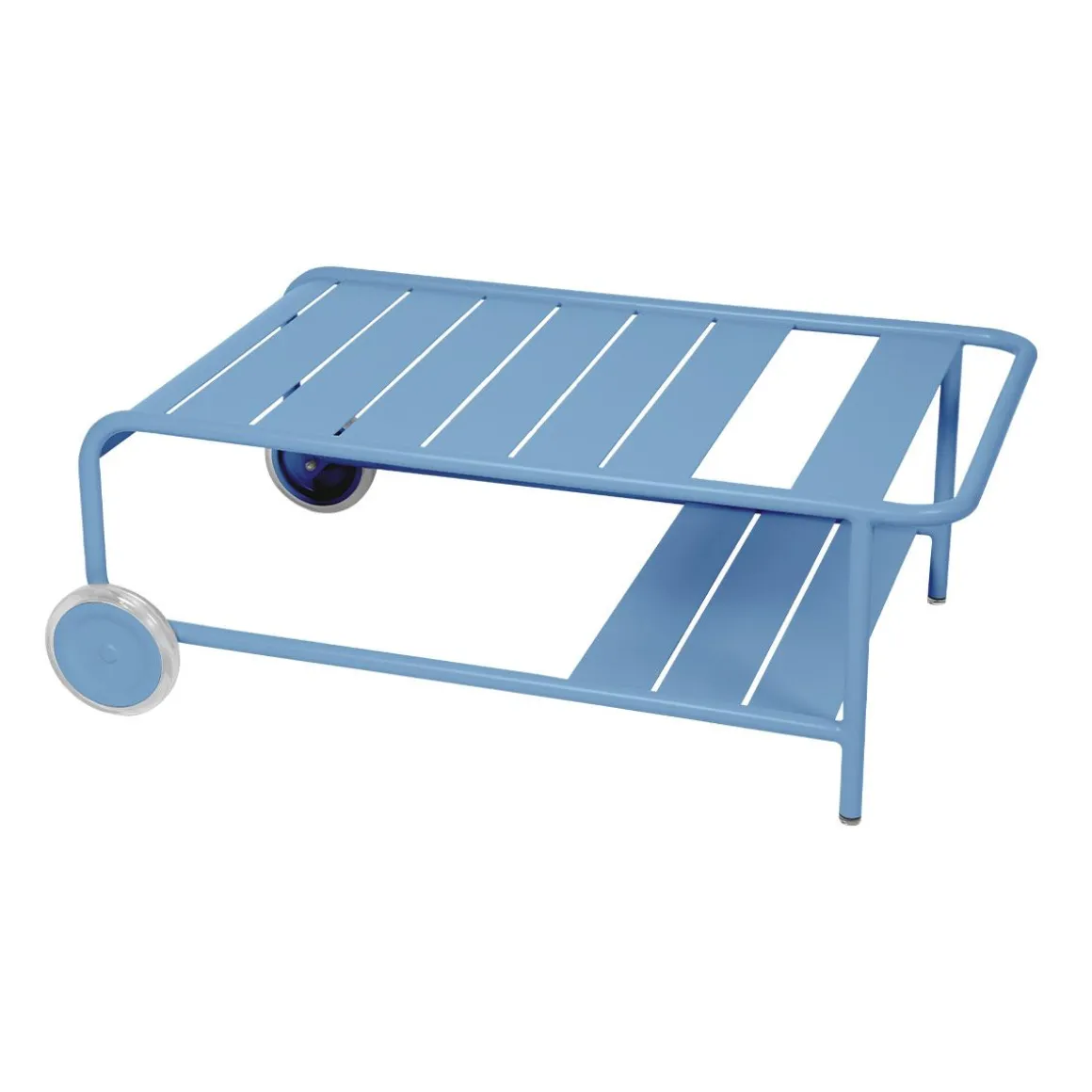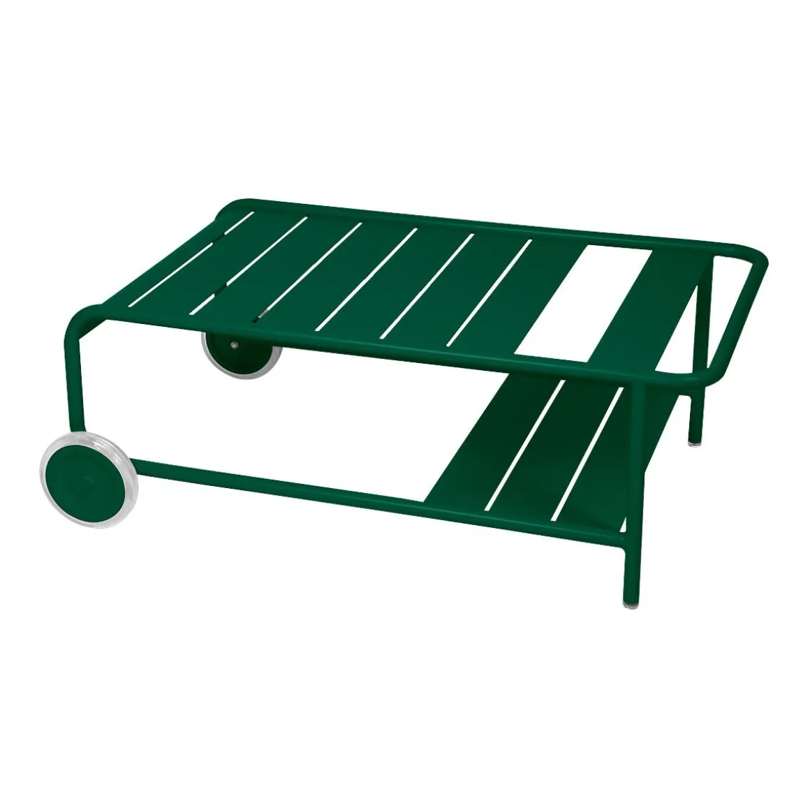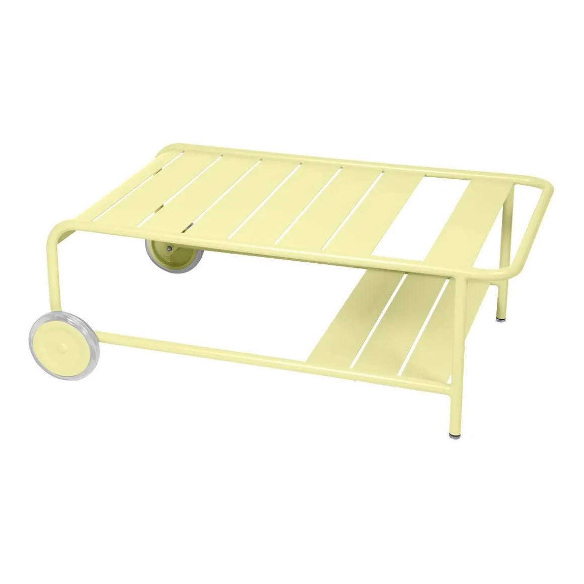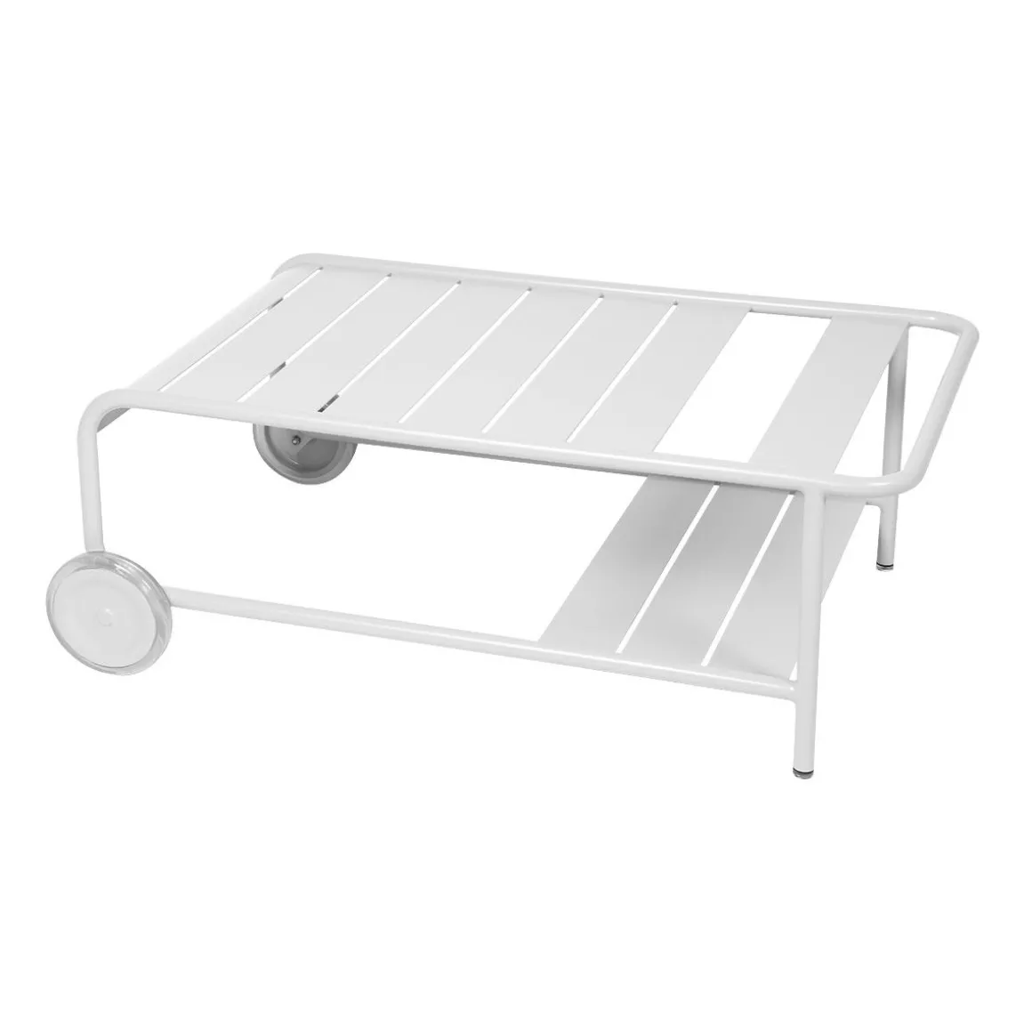 Luxembourg Table basse à Roues de Fermob par Frédéric Sofia. Fermob exauce vos voeux d’une table basse en métal assortie au reste de la gamme mythique Luxembourg, dont vous êtes un fan inconditionnel ! Ou bien sera-t-elle , a contrario, la première pièce de ce mobilier synonyme d’art de vivre à la française pour laquelle vous allez craquer ? Frédéric Sofia l’a désignée et signe là une table basse à roulettes originale qui vous accompagnera au gré de vos envies. Envie de..déjeuner sous l’olivier? Prendre l’apéro à côté de la piscine? Diner sur votre terrasse de bord de mer? Pour tout cela, et bien d’autres occasions encore, cette table que vous déplacerez grâce a ses roues et une poignée, se révélera parfaite ! Idéale aussi pour poser bouteilles et carafes, plantes ou encore revues, grâce à sa tablette inférieure. Cette table basse design est aussi d’une solidité remarquable et d’une résistance aux intempéries et aux UV à toute épreuve, pour le plus grand plaisir des amateurs de design et de mobilier gai et convivial. Par étonnant! Elle bénéficie de l’expertise Fermob et a été créée avec amour et soin pour vous combler…