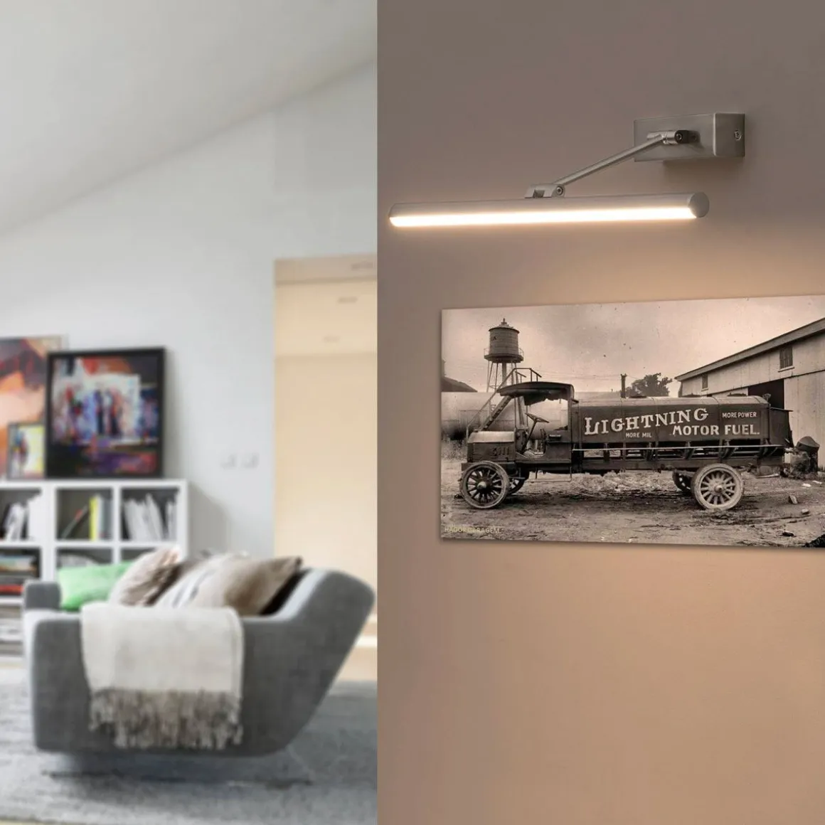 Magritte de Faro Barcelona. Magritte est une applique de tableaux LED orientable, fabriqué en acier. La source d’illumination intégré et driver inclus. Il s’agit d’une lampe aux lignes minimalistes, c’est pourquoi elle cède toujours la vedette à l’objet qu’elle éclaire.