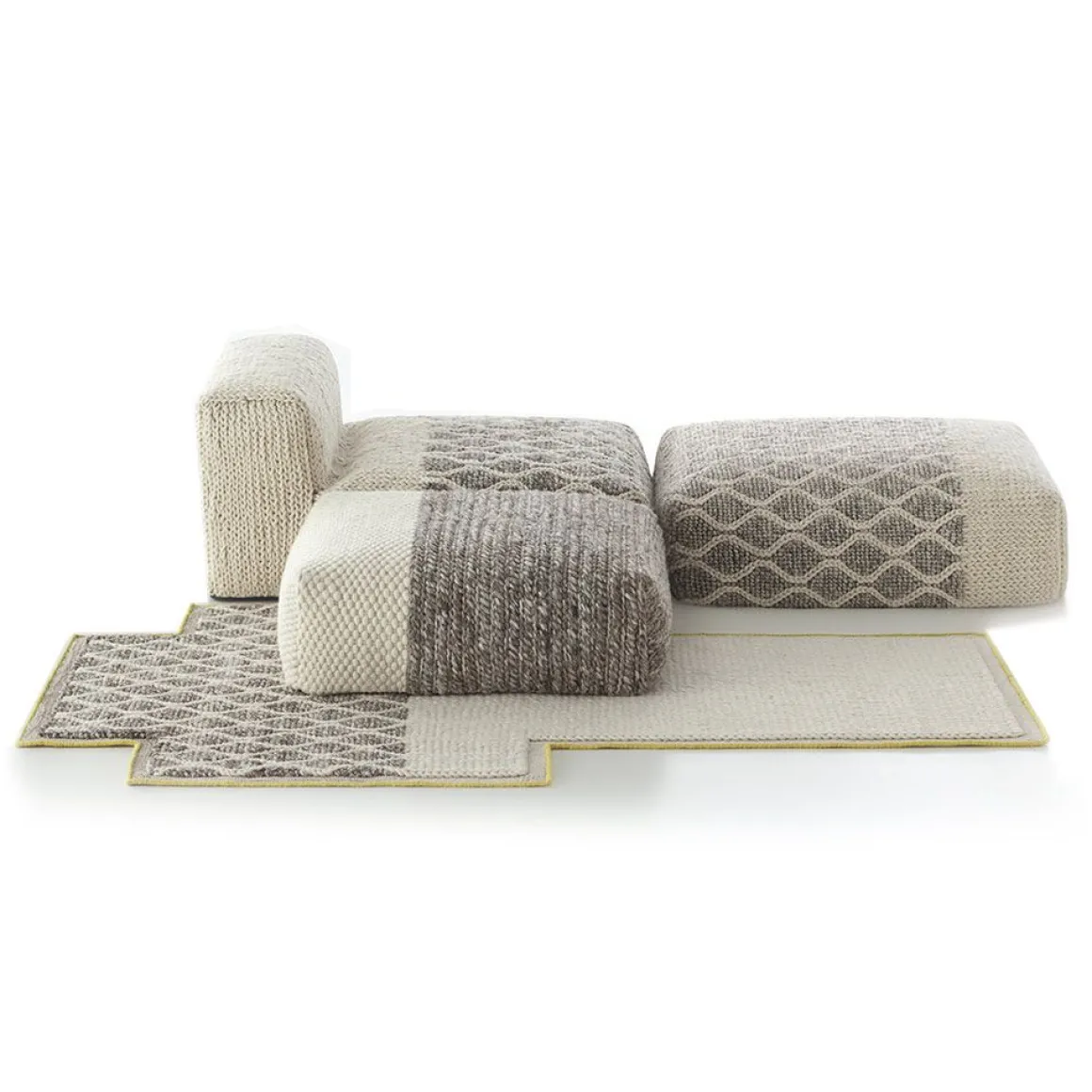 La collection Mangas Space est la suite de la recherche de textures et de volumes généreux initiées par la créatrice Patricia Urquiola avec Mangs Original. C’est une collection similaire en termes de textures, mais plus modulable, avec des éléments de plus en plus volumineux et une palette de couleurs plus audacieuse qui parvient à brouiller la ligne entre tapis et meubles.