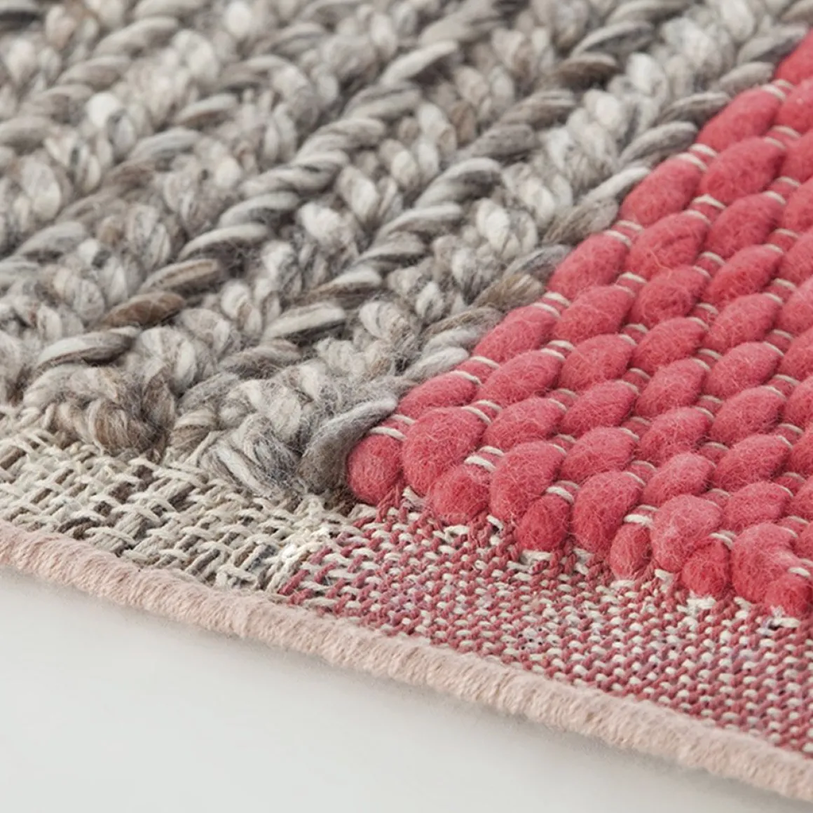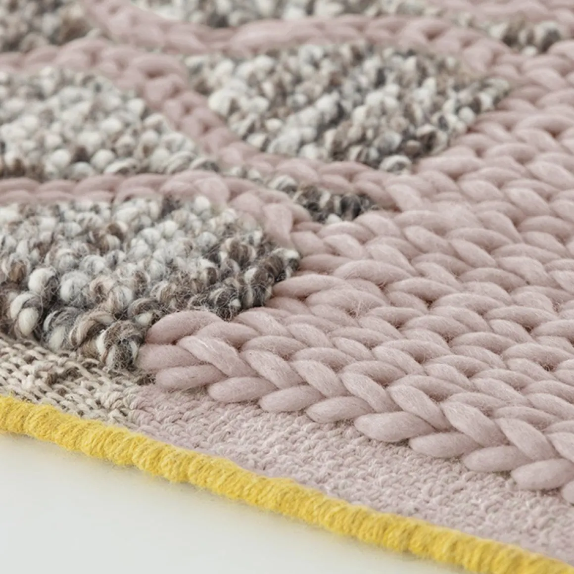 Finitions : Corail (laine Plait), Jaune (laine Plait), Ivoire (laine Rhombus) et Rose (laine Rhombus)