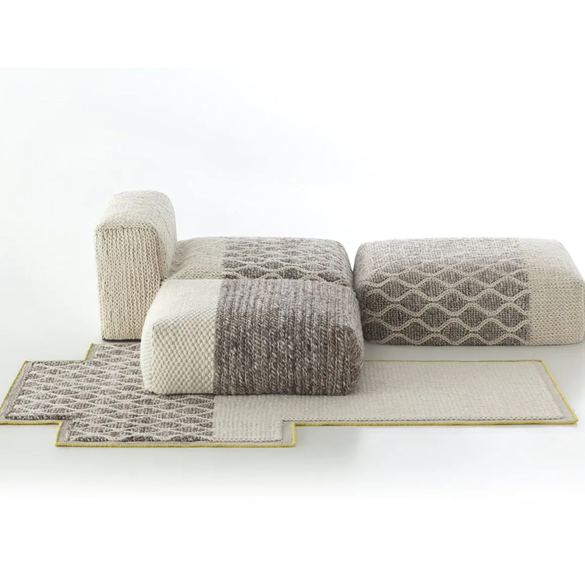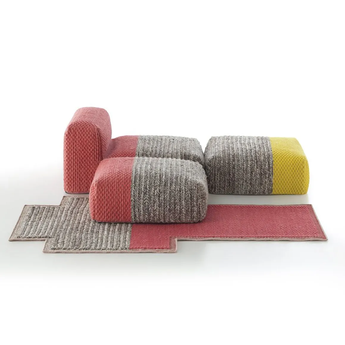 La collection Mangas Space est la suite de la recherche de textures et de volumes généreux initiées par la créatrice Patricia Urquiola avec Mangs Original. C’est une collection similaire en termes de textures, mais plus modulable, avec des éléments de plus en plus volumineux et une palette de couleurs plus audacieuse qui parvient à brouiller la ligne entre tapis et meubles.