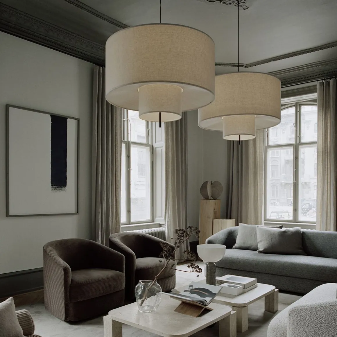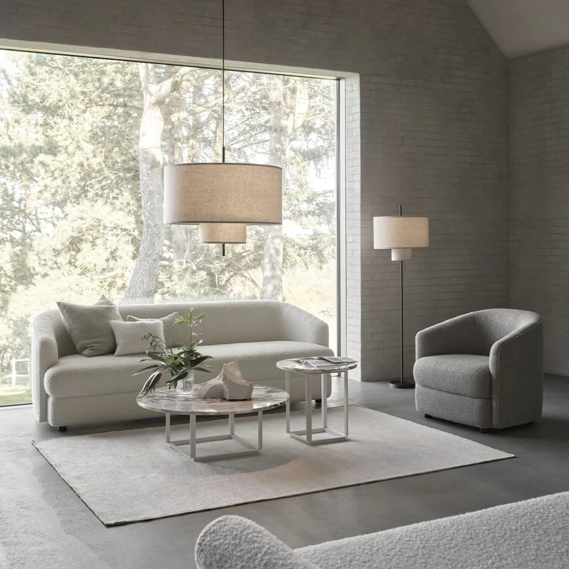 La famille de luminaires Margin est l’interprétation moderne d’un luminaire classique par le designer John Asbury. Explorant une typologie d’éclairage à plusieurs niveaux, les abat-jours entrecroisés de Margin diffusent doucement la lumière et donnent instantanément le ton avec chaleur et tactilité. La douceur du tissu est tempérée par une silhouette épurée et graphique qui confère une certaine présence et un certain volume à un espace. C’est le sens des proportions, ainsi que des détails tels que l’élément linéaire à travers la lampe, qui aiguisent l’esthétique et permettent au caractère particulier de Margin de se déployer.