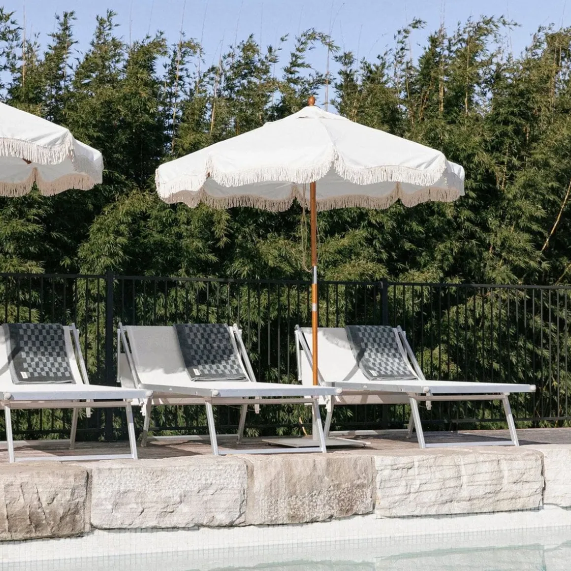 Matériaux : Tissu Pleasuretex®, 8 baleines et poteaux en bois de qualité supérieure, acier