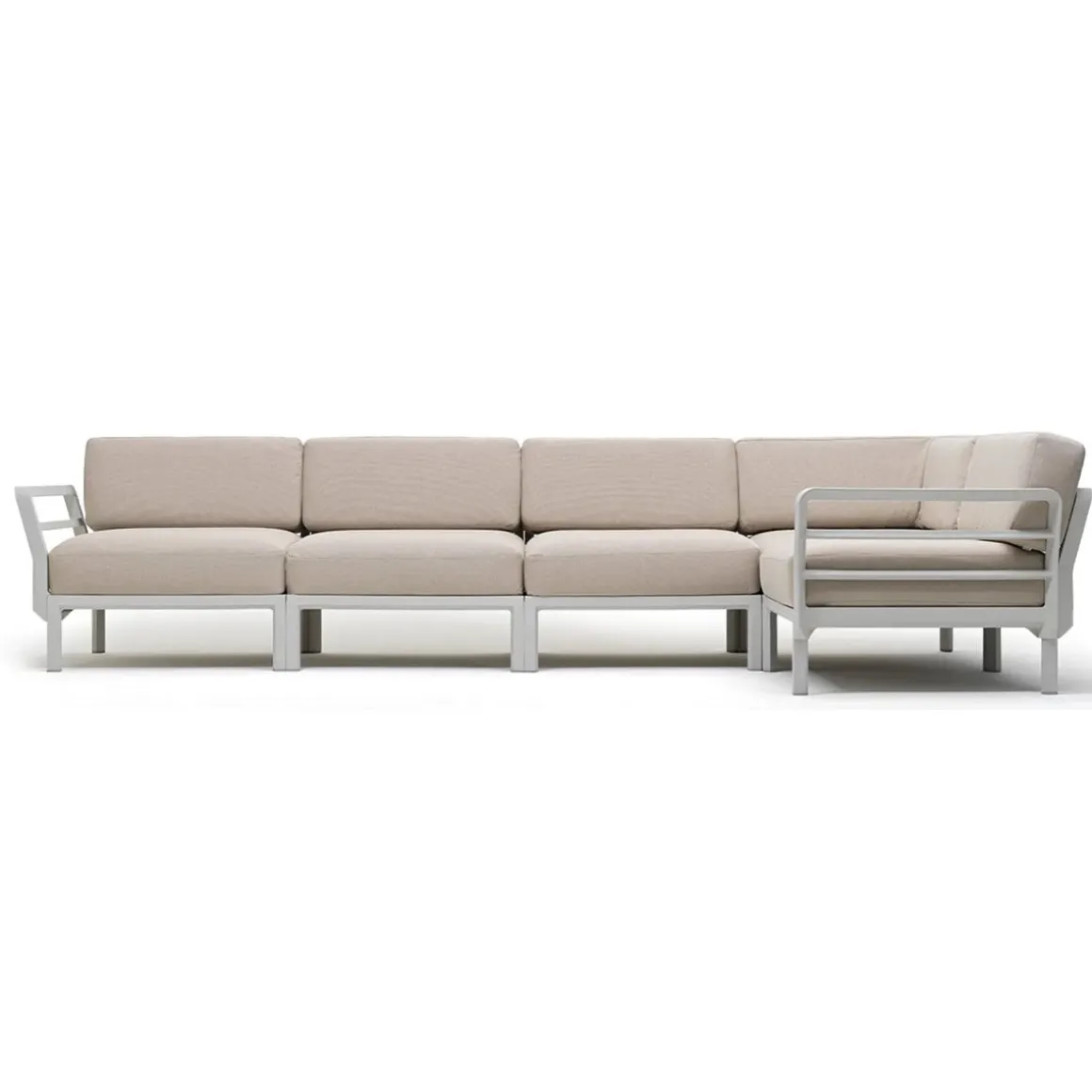 Maximo 5 de Nardi. Maximo 5 est un canapé modulaire doté d’une structure en résine régénérée et de tissus à haute teneur en matières recyclées qui, à partir d’un seul module, permet de réaliser d’innombrables configurations. Dossiers et accoudoirs s’enclenchent sur tous les côtés de l’assise grâce à un système de blocage ne nécessitant pas de vis.