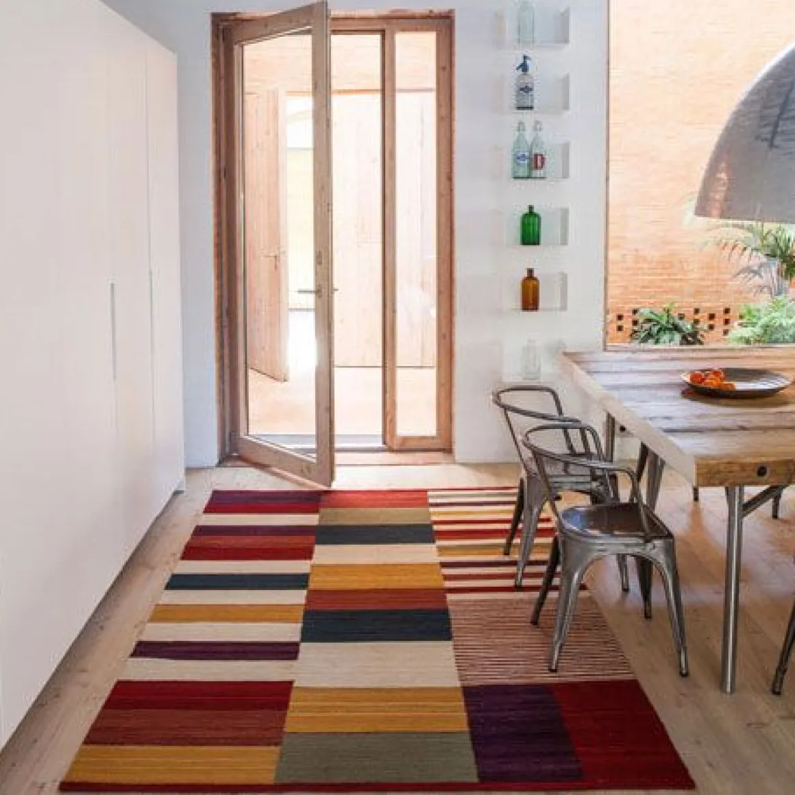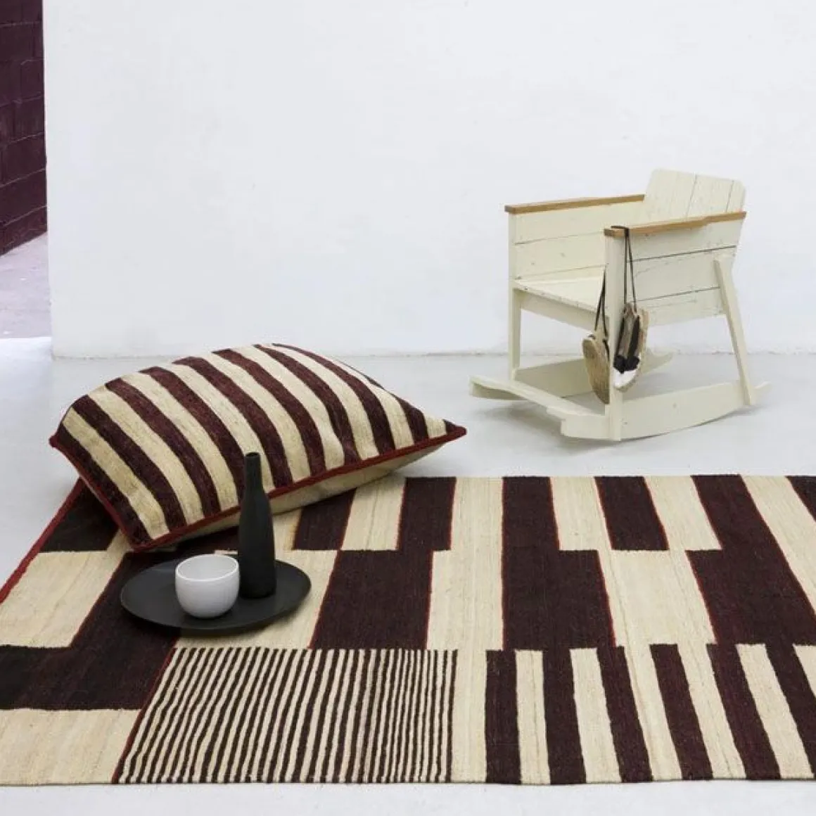 Designé par Nani Marquina, Medina est une collection de tapis de la marque Nanimarquina. Inspirée des tapis d’antan, cette collection revisite l’essence originelle en se concentrant sur la texture et l’usage à travers la technique du kilim. À l’origine, les tapis étaient utilisés pour protéger les gens du contact direct avec le sol.